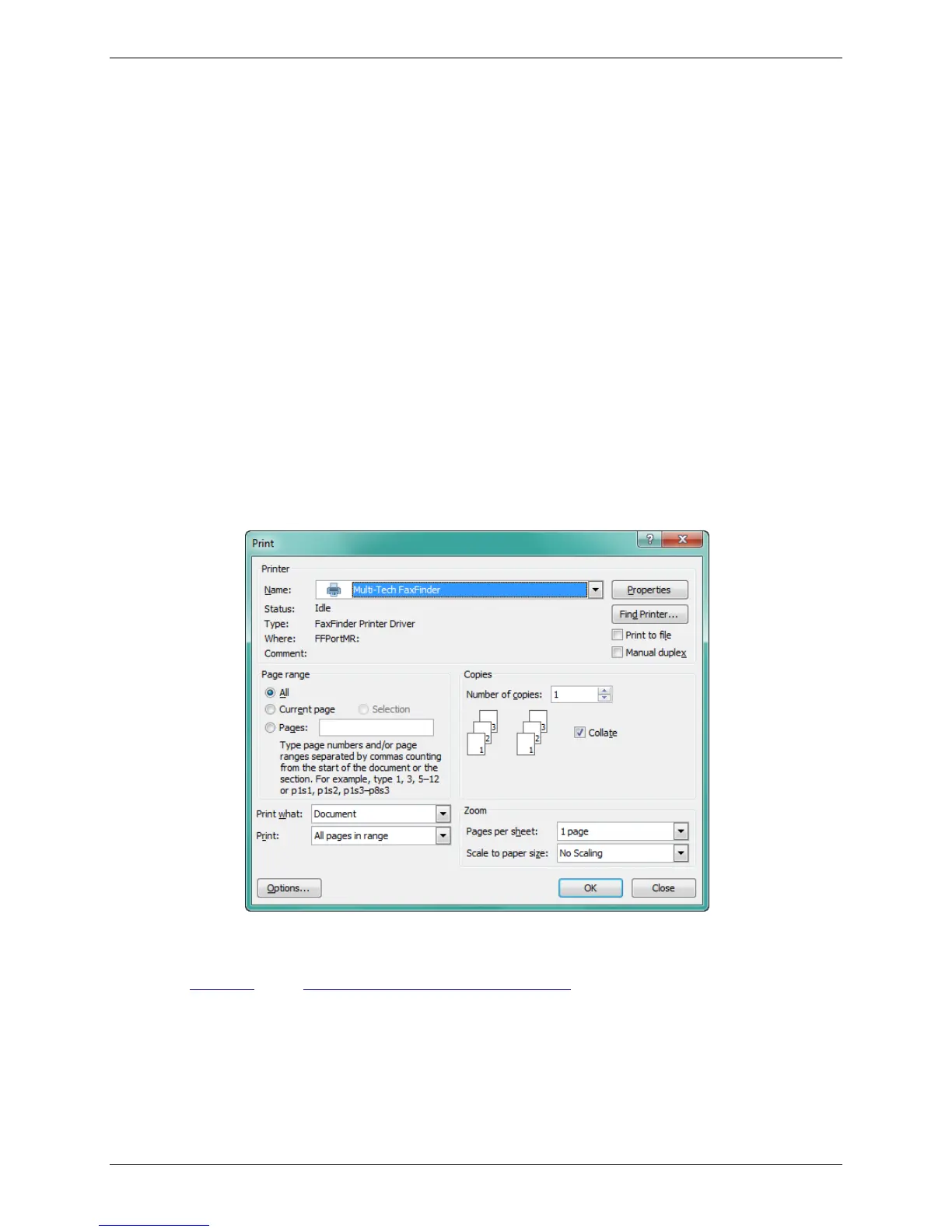 3. Select Multi-Tech FaxFinder as your printer and click OK (or Print depending on your program). The