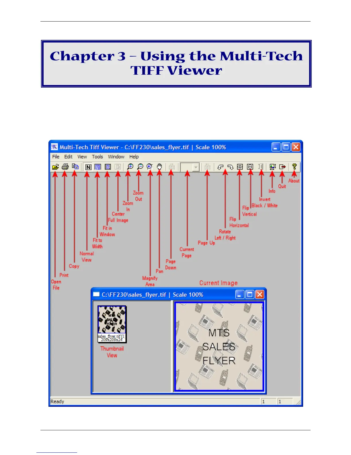 Use the Multi-Tech Tiff Viewer to view faxes as an image. You can view thumbnails, zoom, magnify,