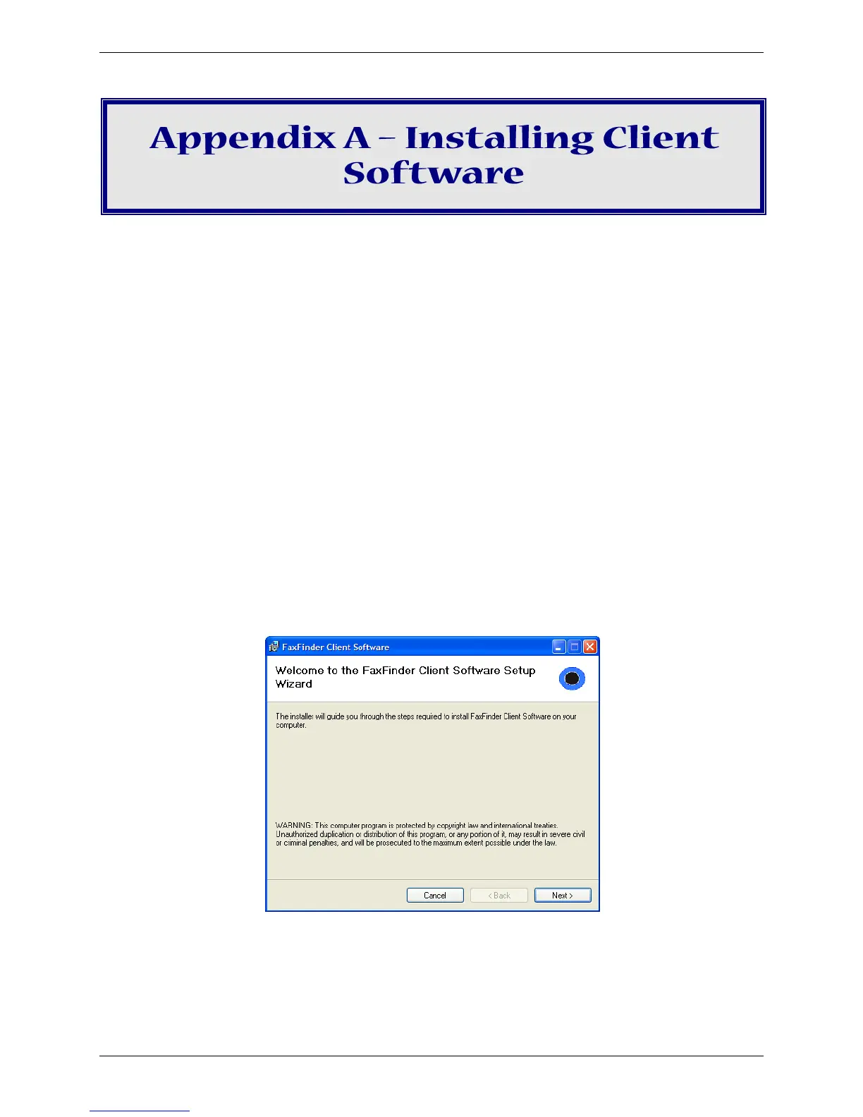 Important: If you have old versions of any FaxFinder client software installed, uninstall that software