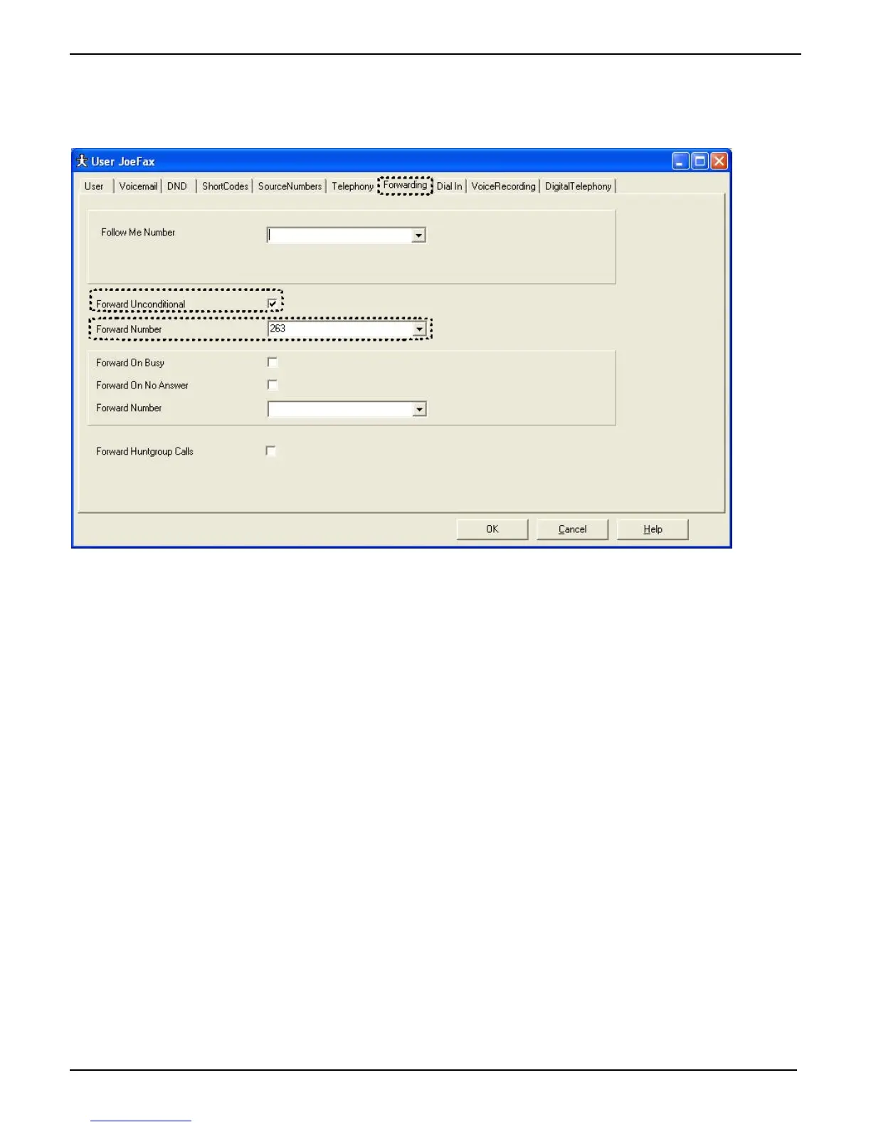 In the User | Forwarding tab, designate the huntgroup extension to be forwarded and make the forwarding
