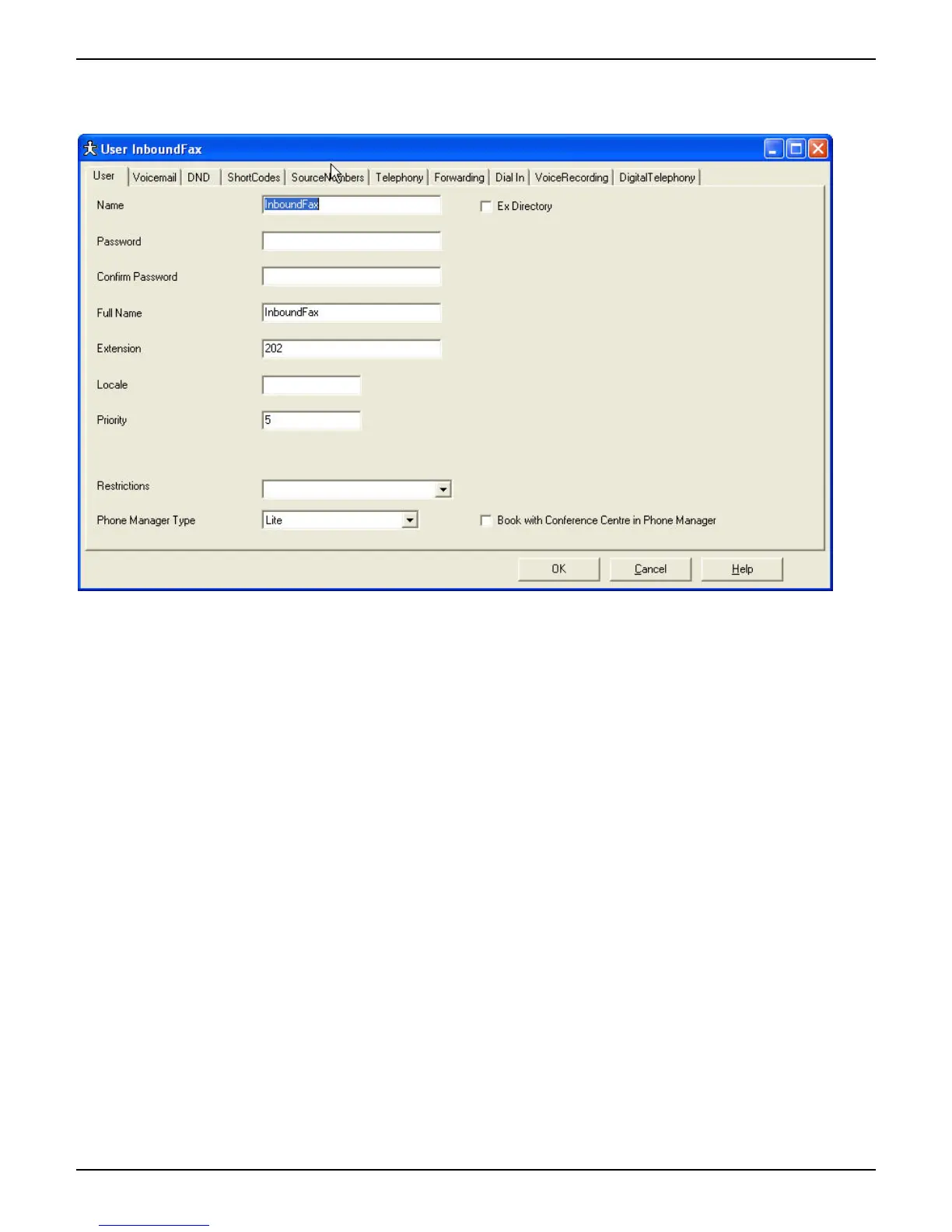 Open the extension that will be plugged into the FaxFinder fax server and label the extension as on having a faxing