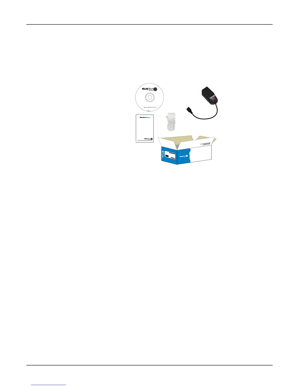 The shipping box contains the MT5634MU, one RJ-11 cable, your Quick Start Guide, and one