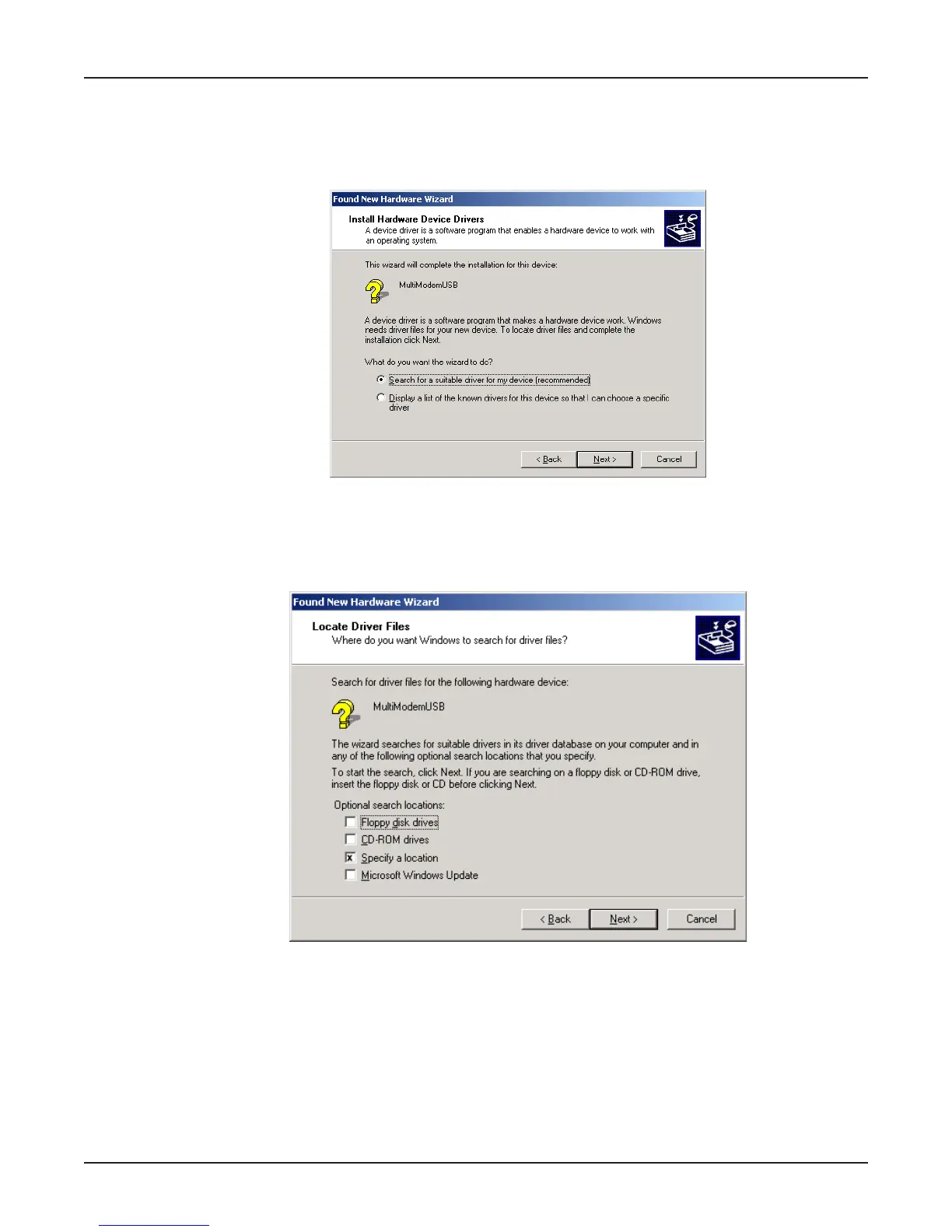 5. The Locate Driver Files screen appears asking where you want Windows to search for the driver