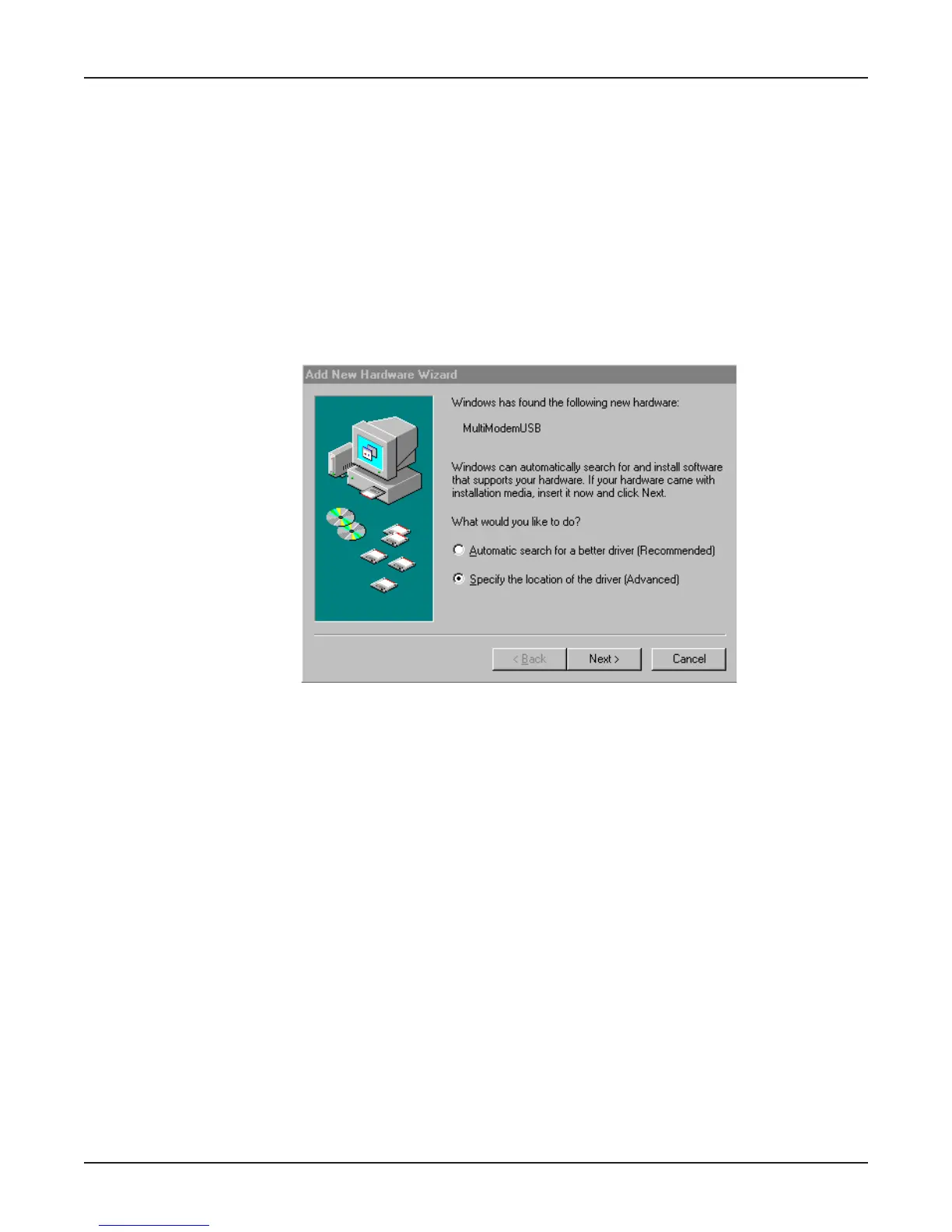 modem as a new device. Then the installation wizard runs again to install the remaining driver files.