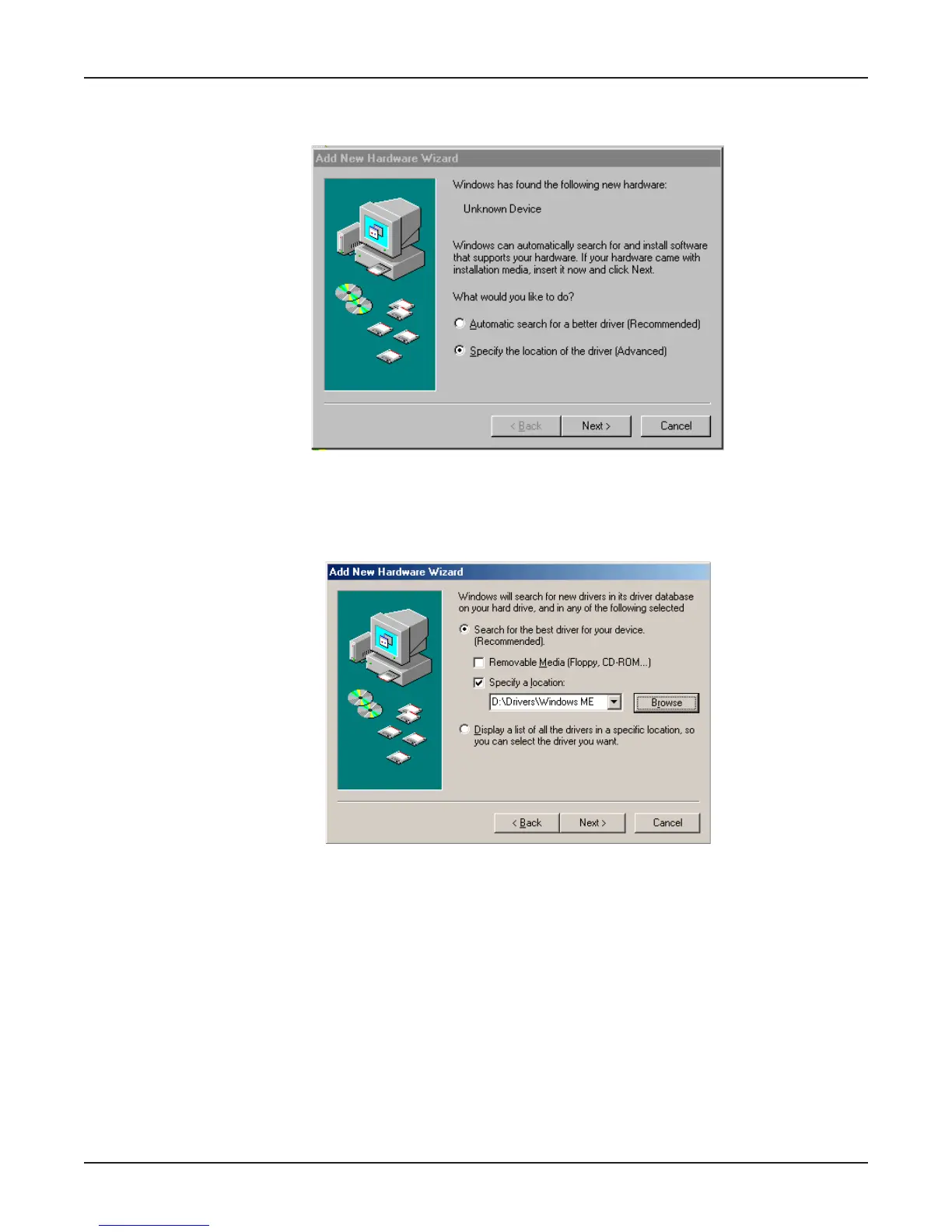 8. Windows ME will now detect an “Unknown Device” and begin another Add New Hardware