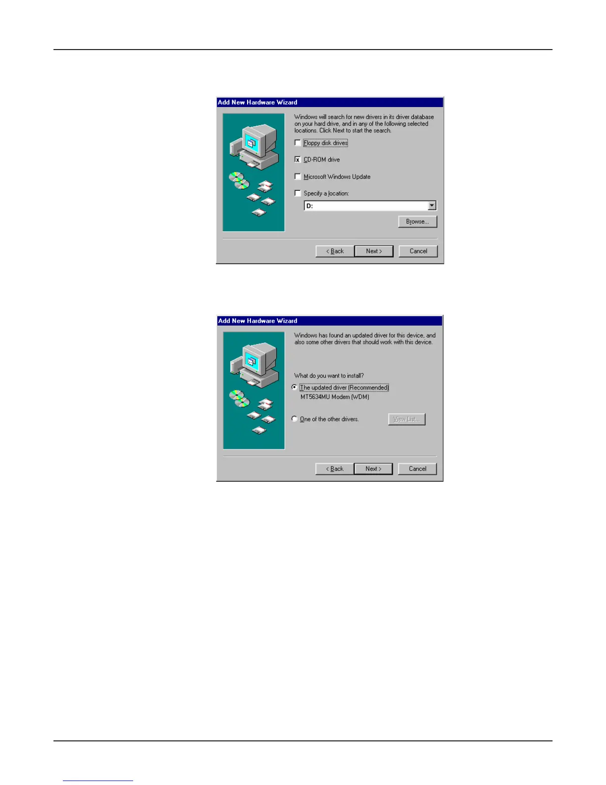 for a new driver . . .” Verify that the “CD-ROM drive” option is selected and click Next.