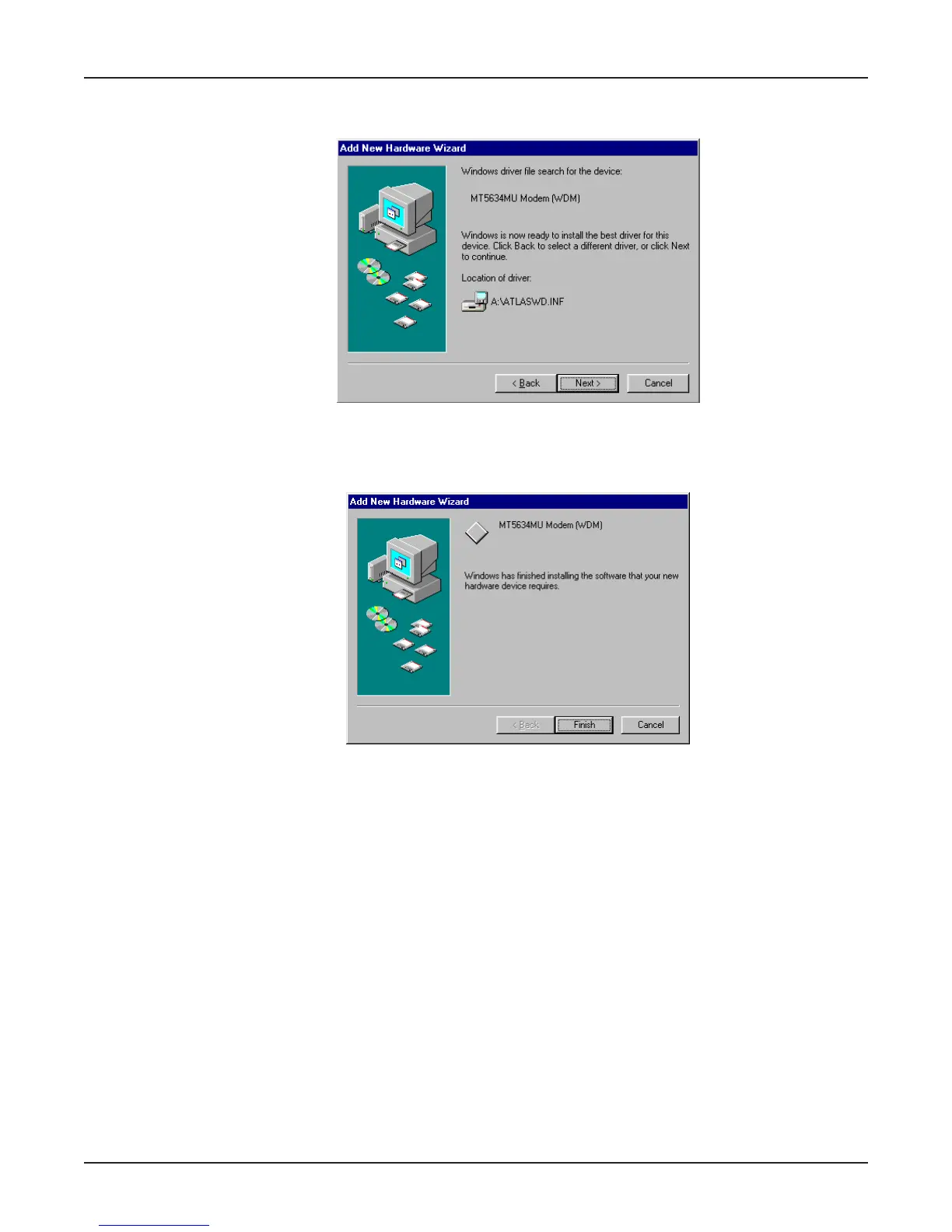 8. Once the files have been copied to your PC, the Add New Hardware Wizard dialog box is