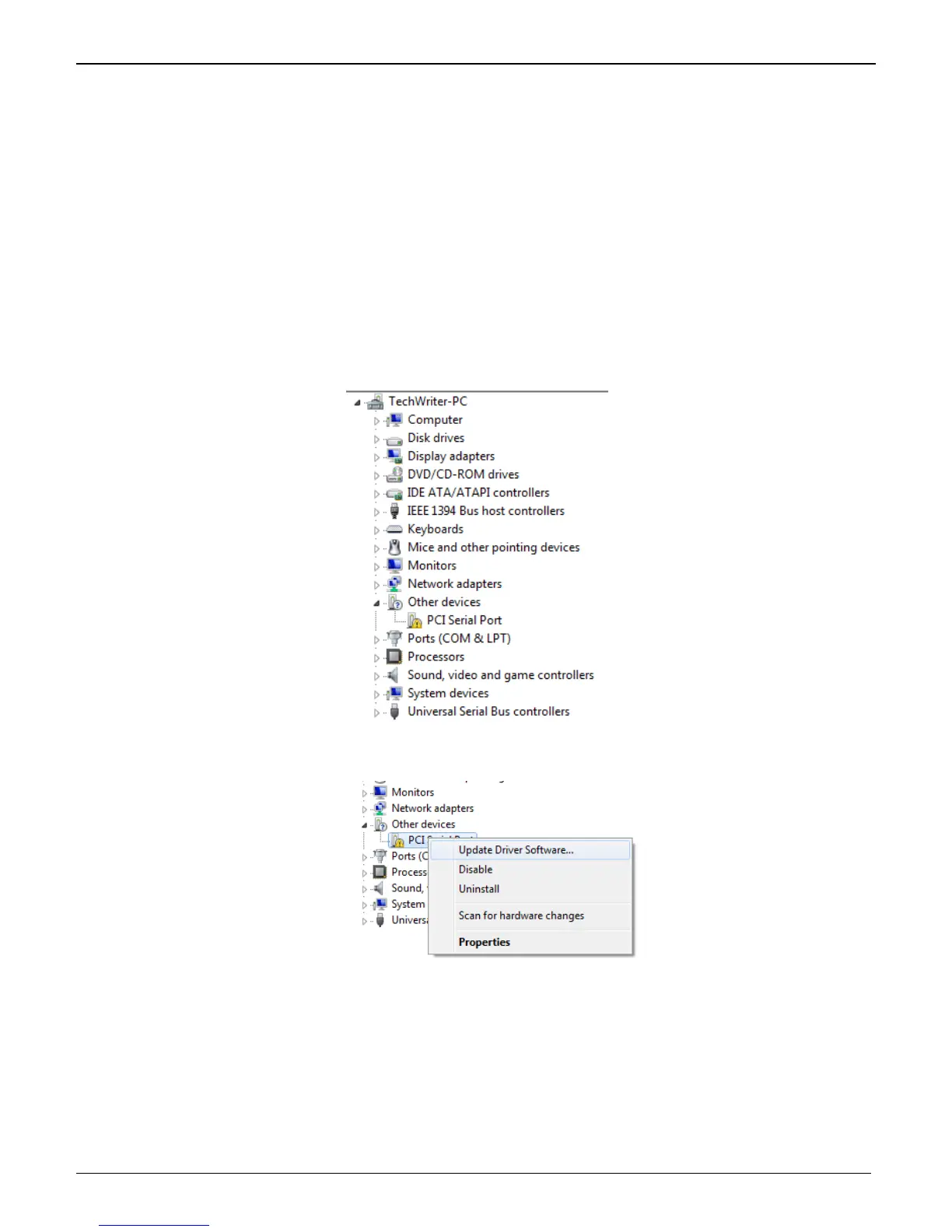 Click on PCI Serial Port and then right click. A submenu comes up; now click on Update Driver