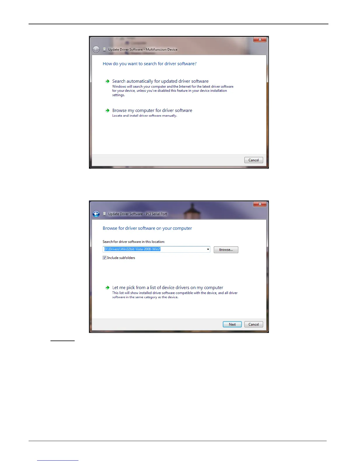 2. Update Driver Software – PCI Serial Port screen appears.