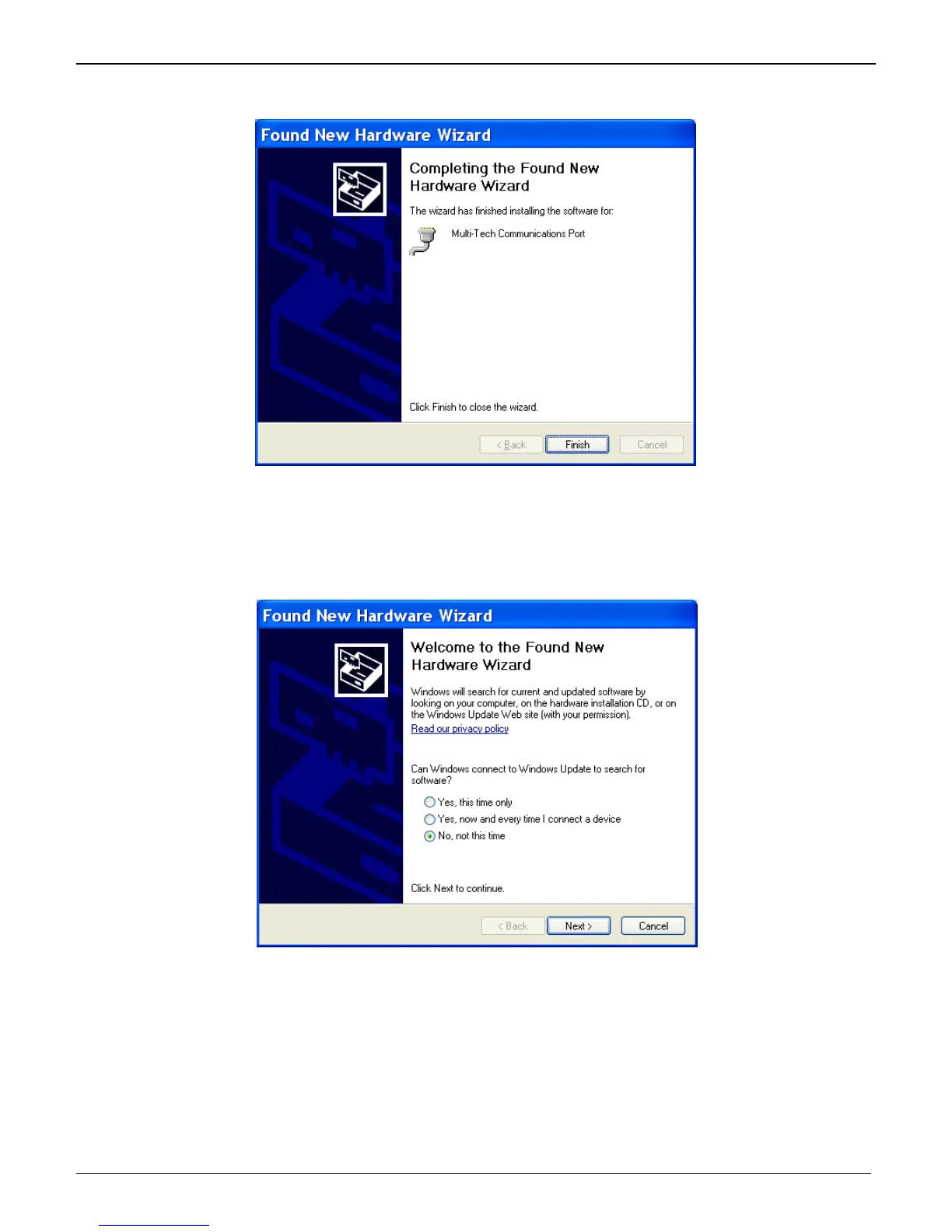1. The Welcome to the Found New Hardware Wizard screen appears.