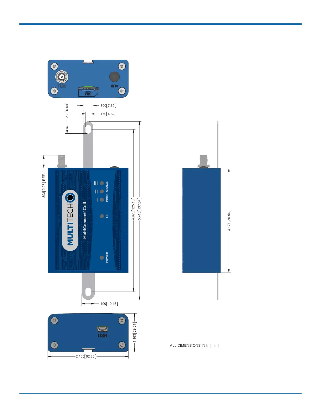 Multitech MultiConnect Cell 100 series - Dimensions; USB Interface Dimensions