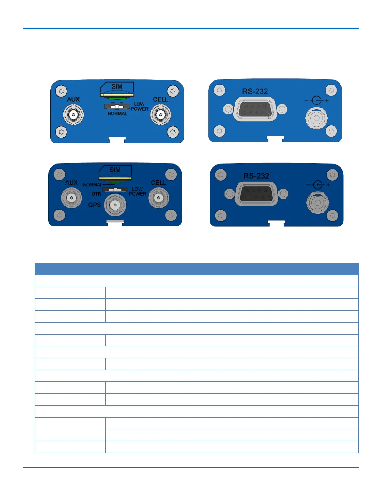 1 surface mount SMA connector for GPS (Available on the MTC-LVW2-B02 only)