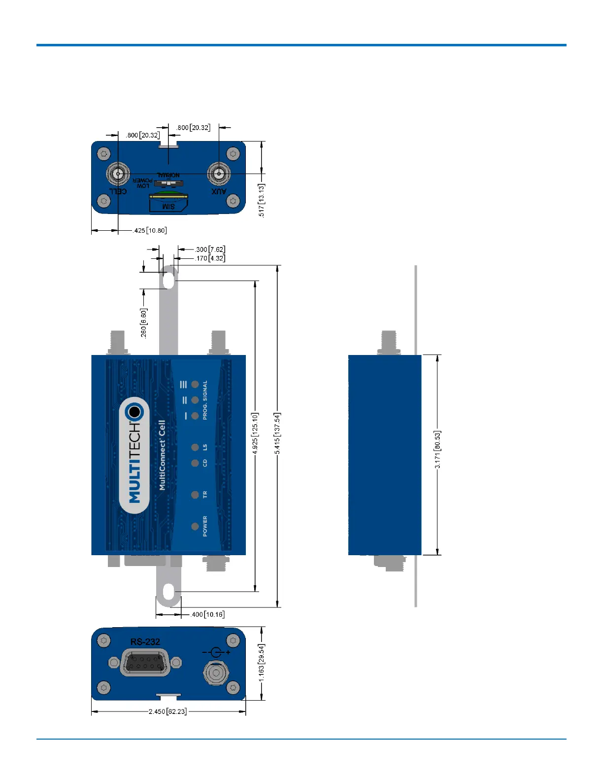 Multitech MultiConnect Cell MTC-LVW2 - Dimensions; Serial