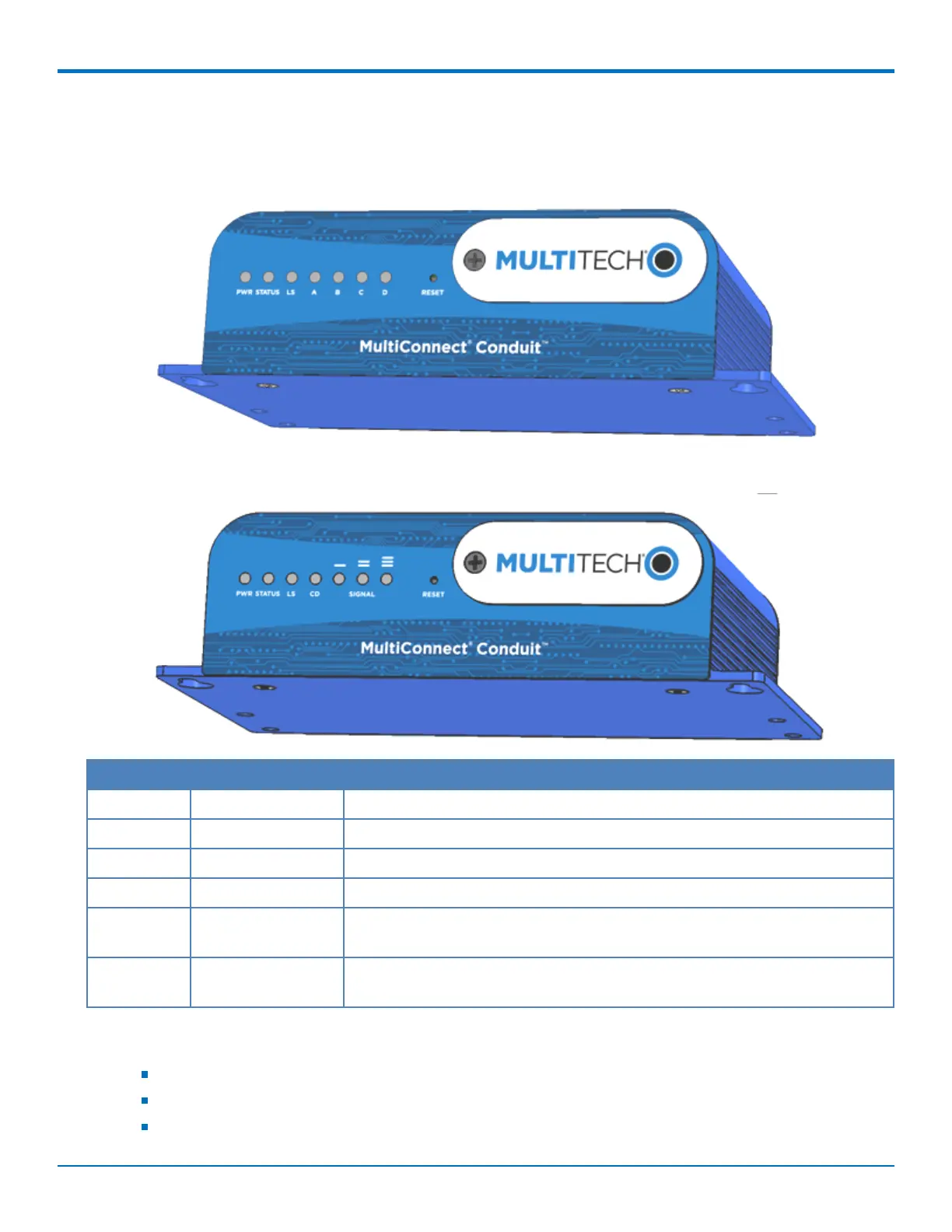 A-B-C-D -- These 4 LEDs are user-specified. Present on the Conduit mLinux model only.