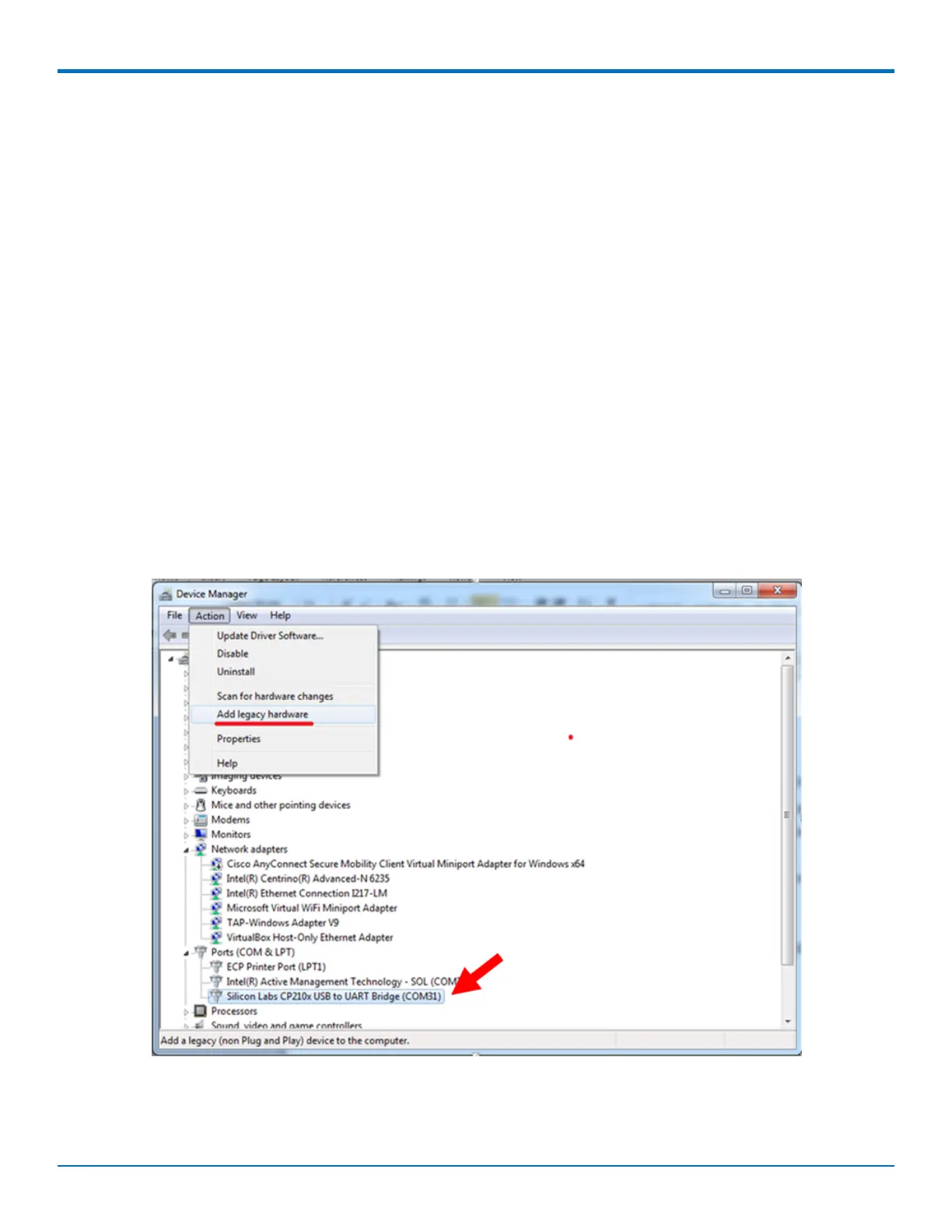 4. Go to Action > Add legacy hardware.