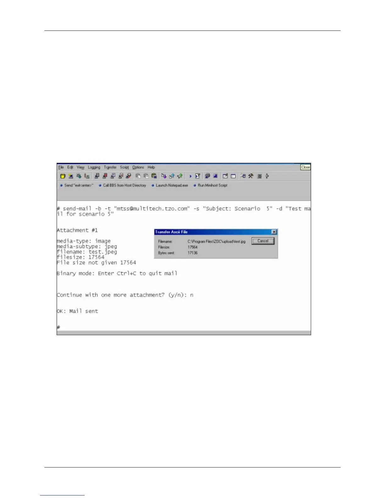 5. If the host wants to quit the email while sending the binary attachment body, type Ctrl+C and wait