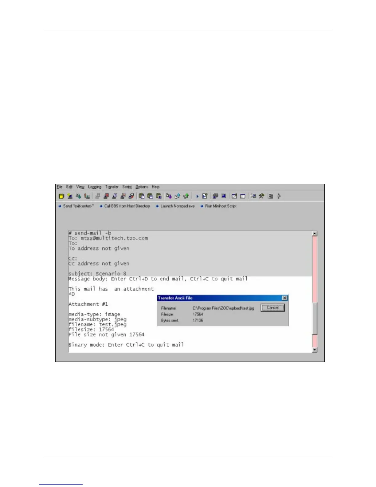 4. If the host wants to quit the email while sending the binary attachment body, type Ctrl+C and wait