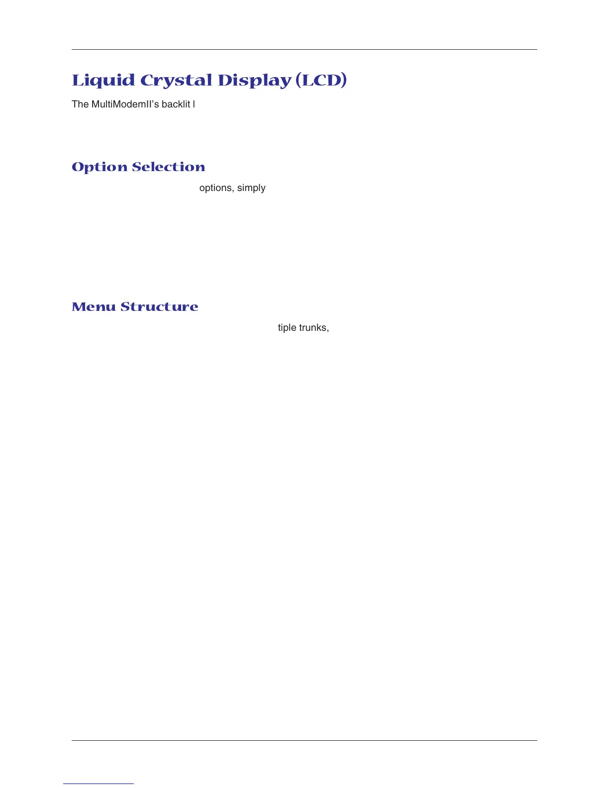 The MultiModemII’s backlit liquid crystal display (LCD) has two functions: to display the current status of