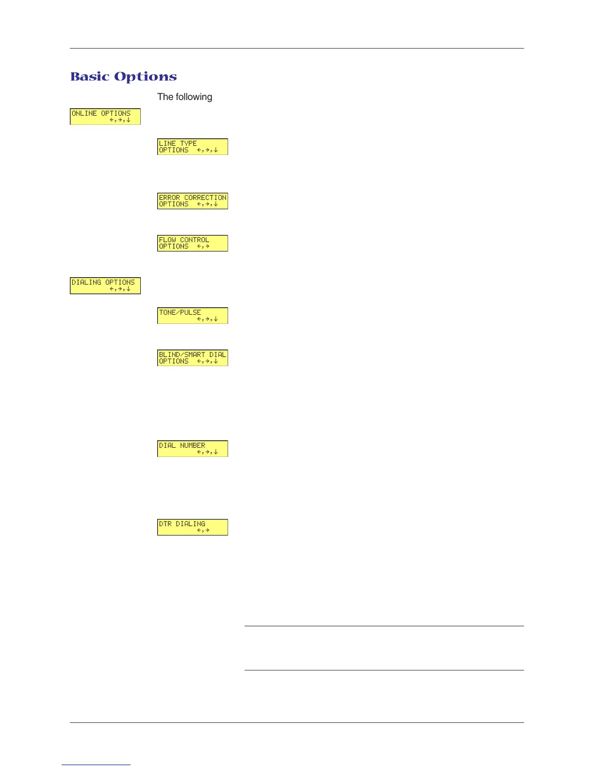 DIALING OPTIONS. The following screens are used to configure dialing options or