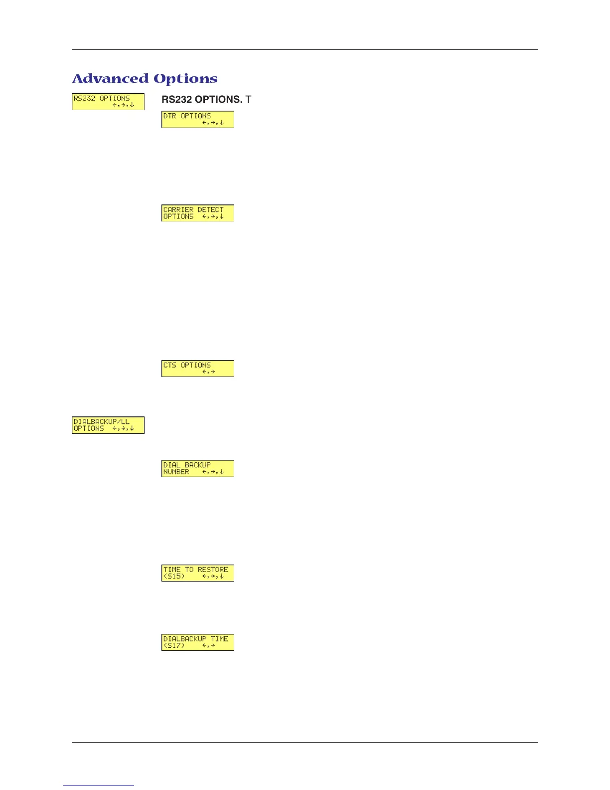 RS232 OPTIONS. The following screens are used to configure the RS-232 interface.