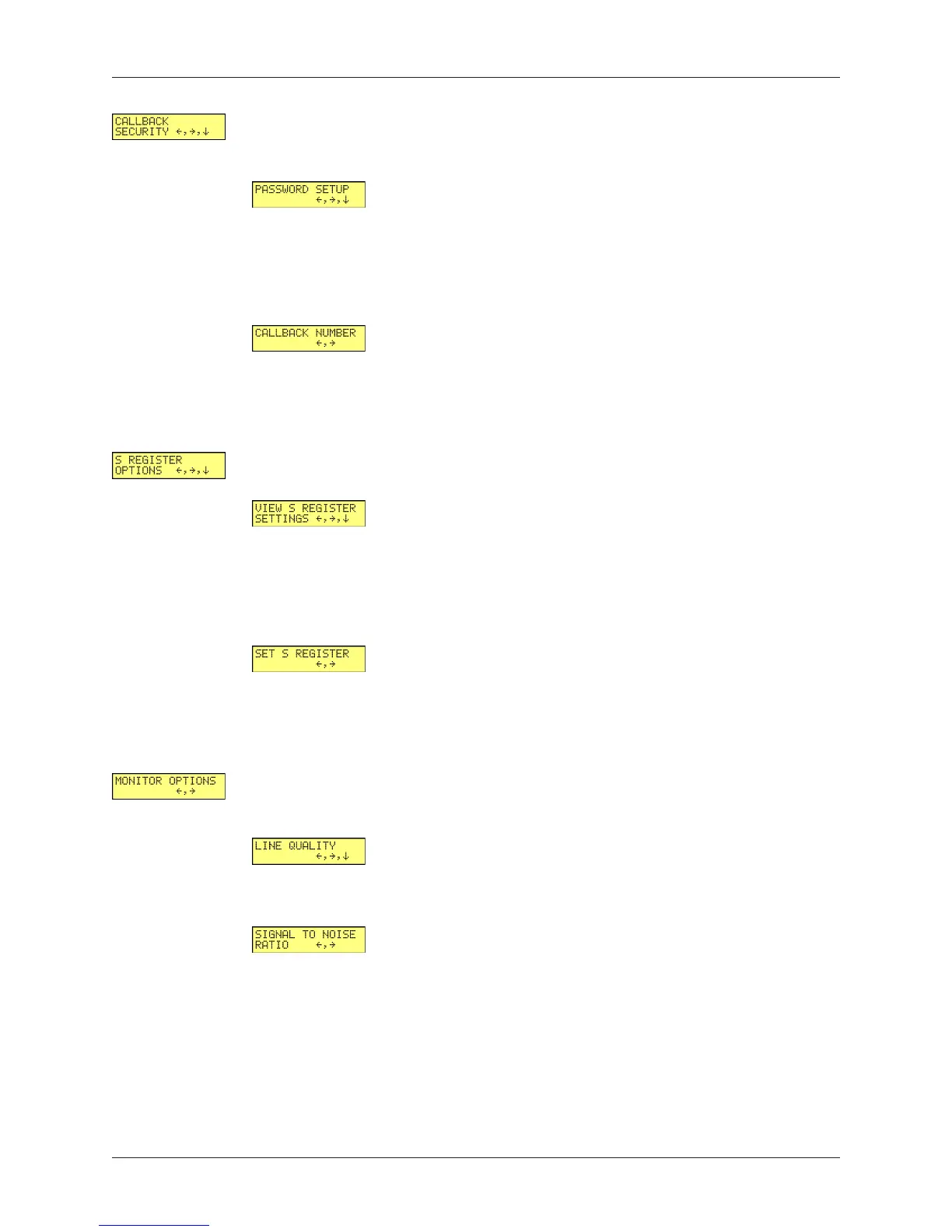 CALLBACK SECURITY. Use the à and Enter buttons to turn callback security on