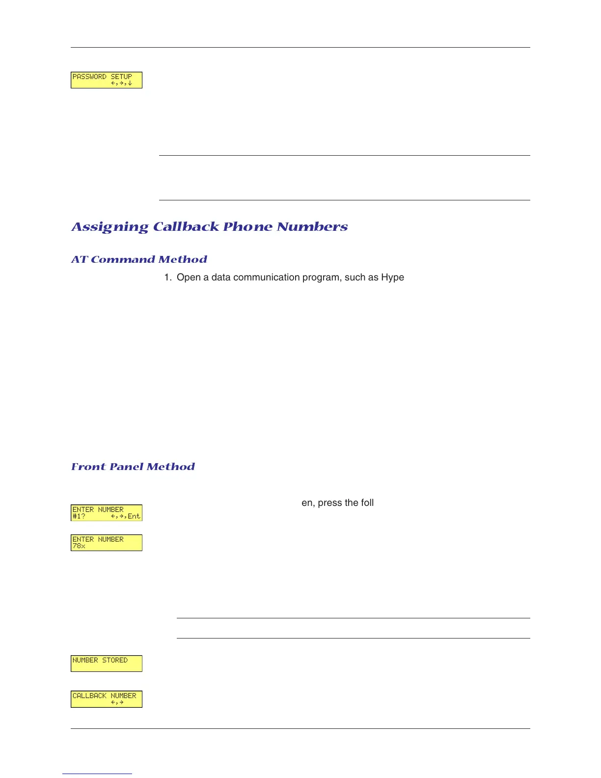 7. Press the Enter button again to go to the CALLBACK NUMBER screen.