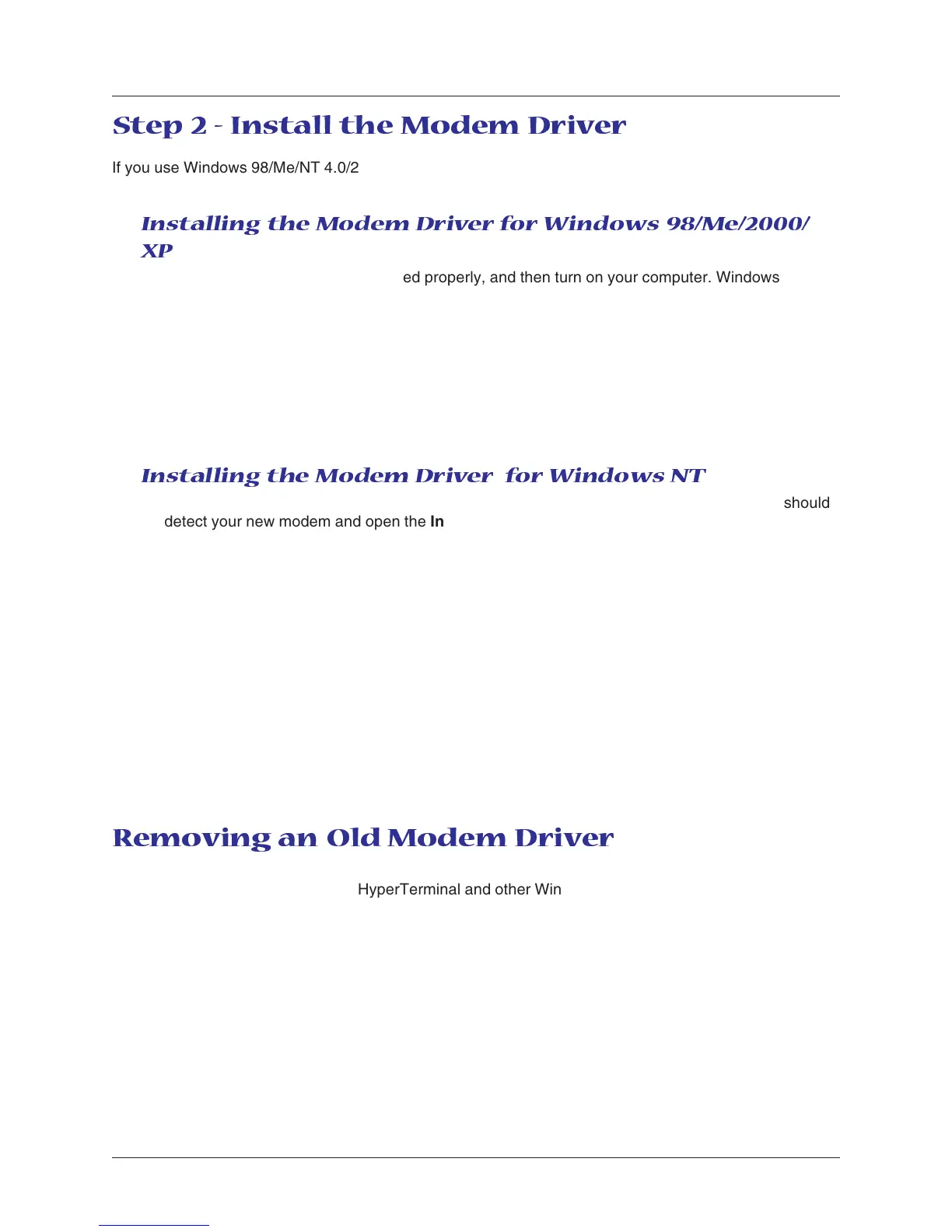 Installing the Modem Driver for Windo ws 98/Me/2000/