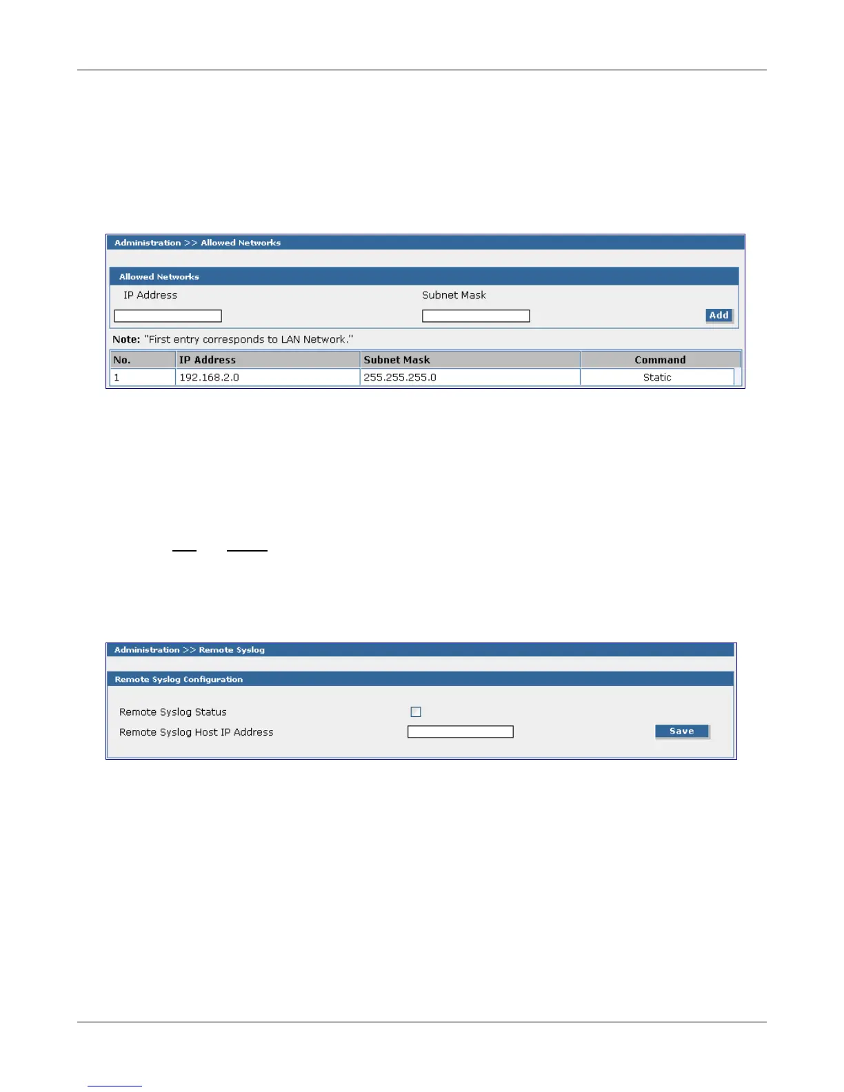 administrator can then add, edit and delete any network. By default, the LAN network is always allowed