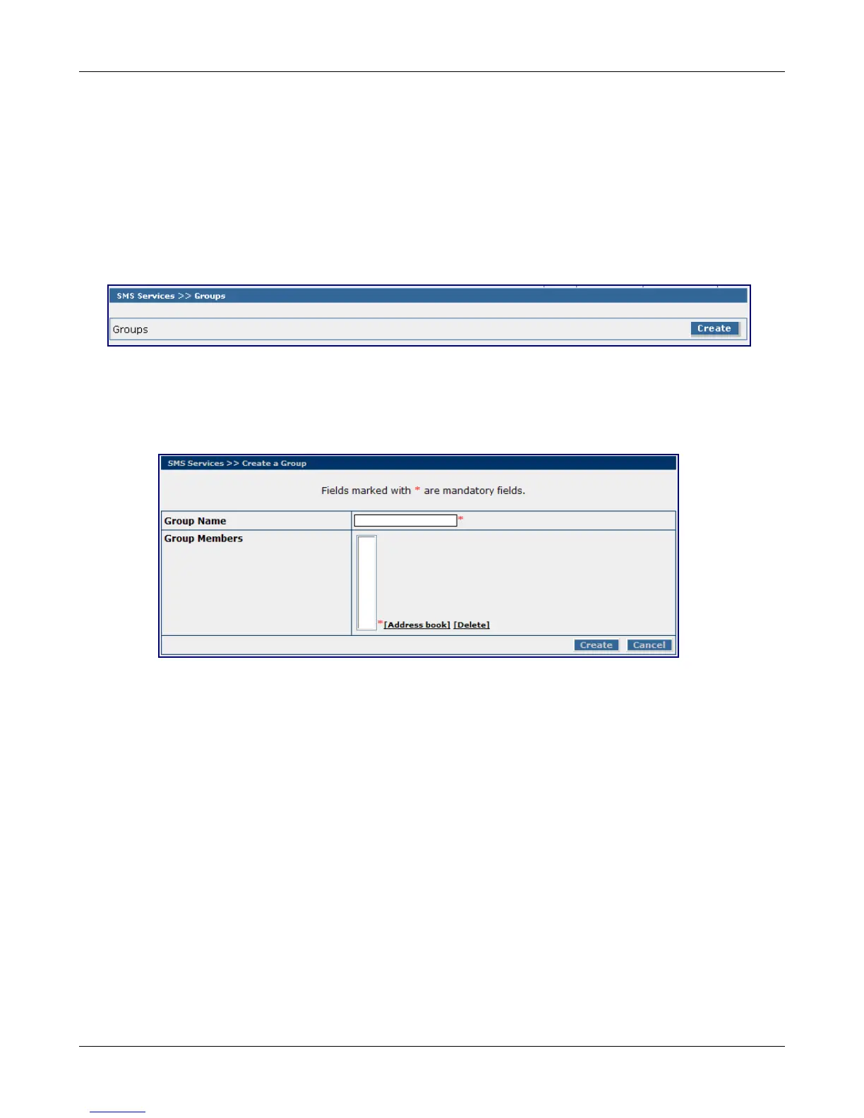 Use this screen to create groups of recipients (names and phone numbers of mobile end points). A group is