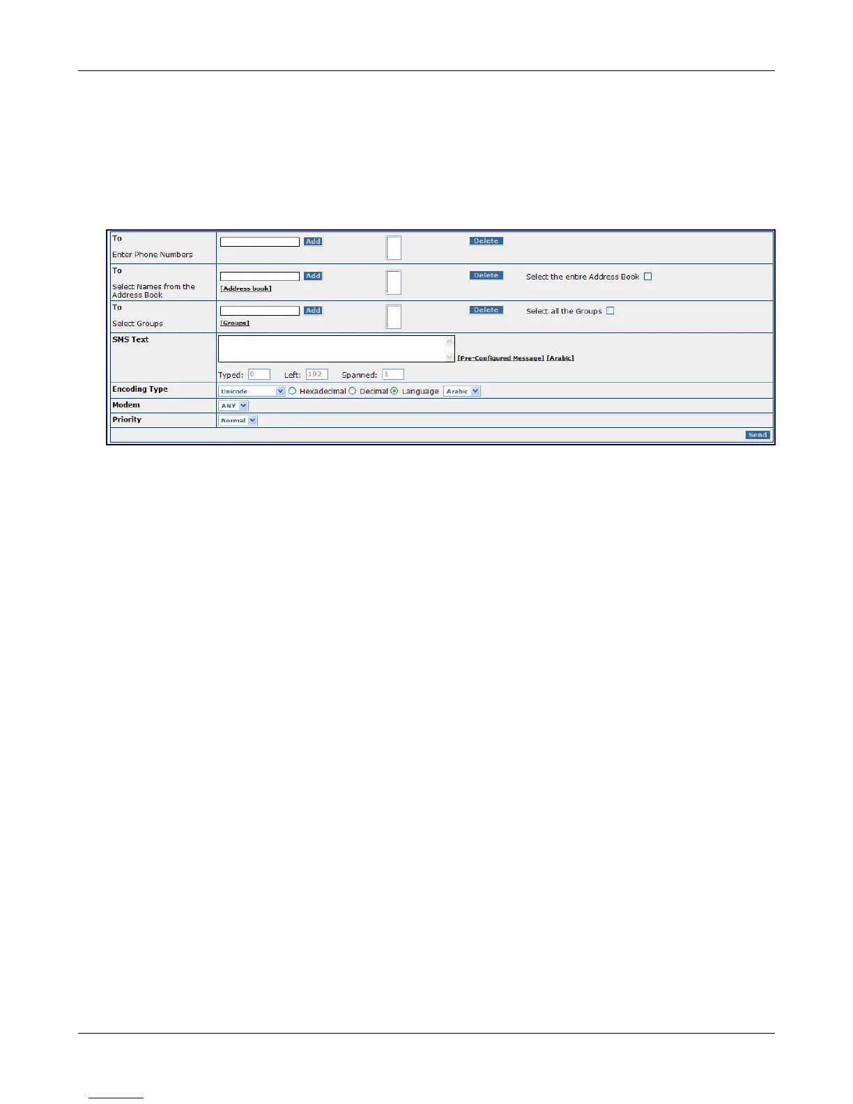Enter the mobile phone numbers to which a new message will be sent. Click the Add button after each