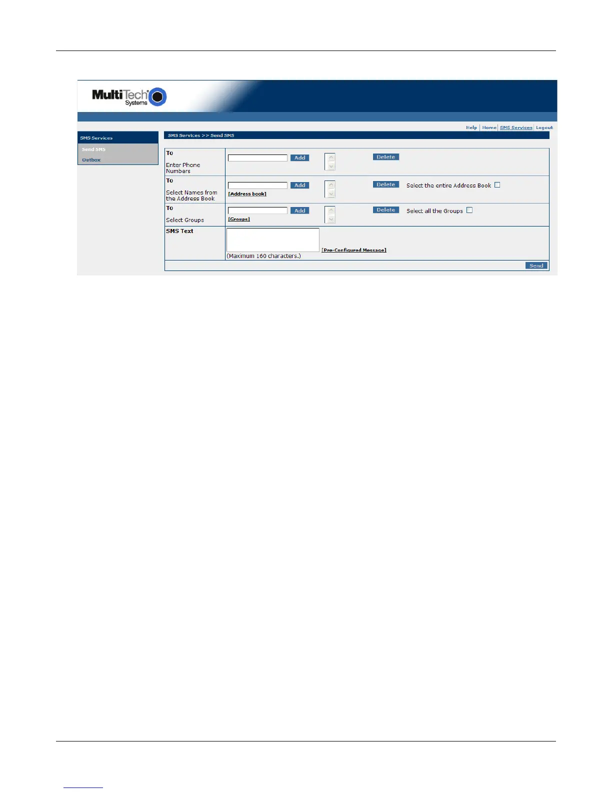 SMS Services > Send SMS