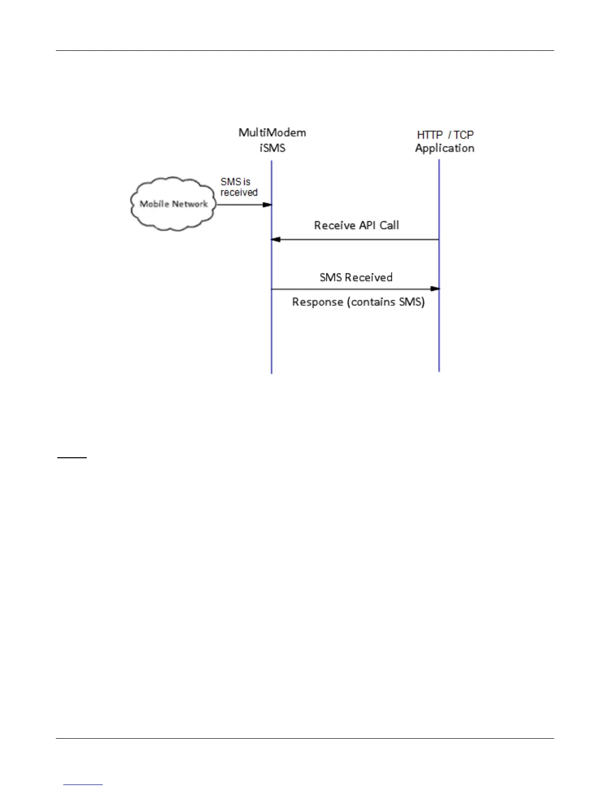• Upon the receipt of request from TCP/HTTP application, the MultiModem iSMS will respond with the