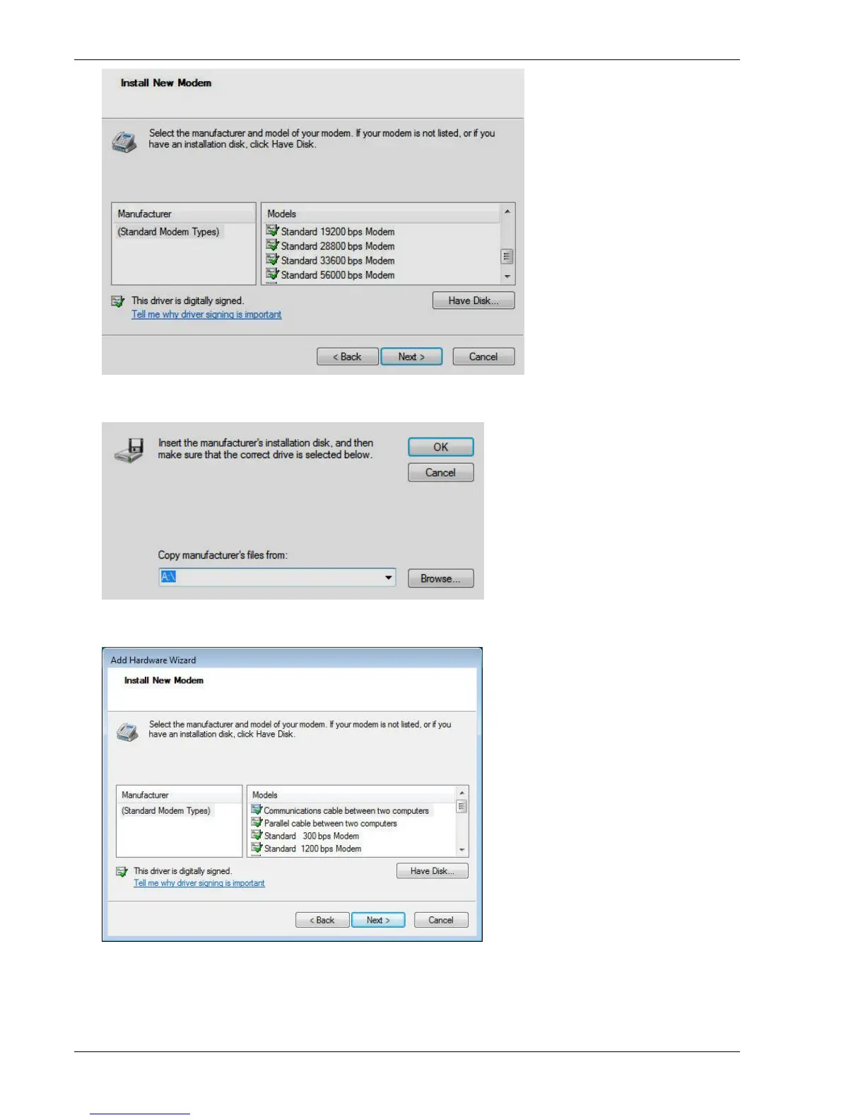 10. Select the driver for your modem and click Next.
