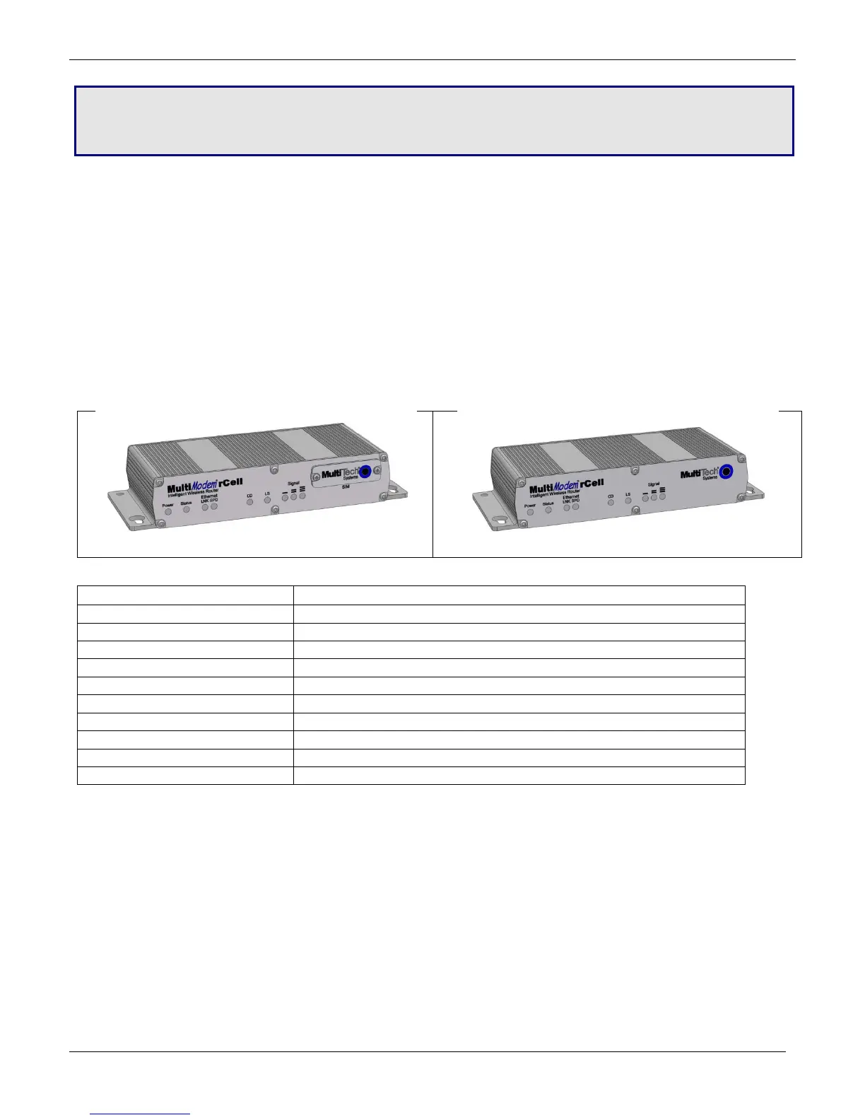 This User Guide describes the MultiModem® rCell intelligent wireless routers with an Ethernet II interface. You