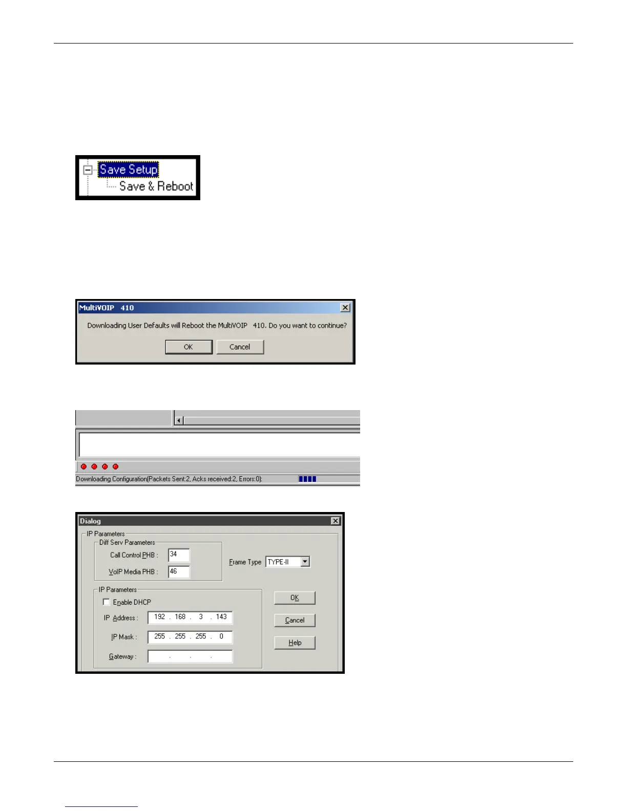 7. Set the IP values appropriate to your VOIP system. Click OK. Progress bars appear as the MultiVOIP reboots