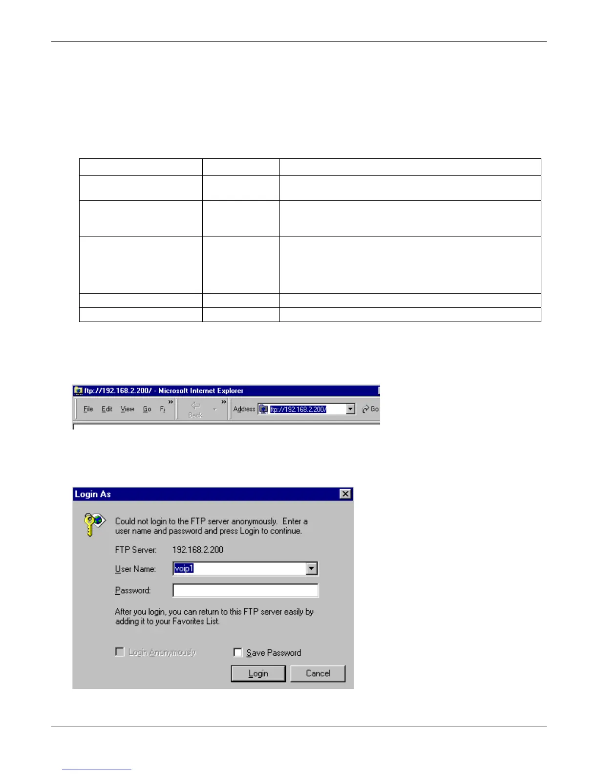 program. Enter the IP address of the MultiVOIP’s FTP Server. If you are using a browser, the address must be