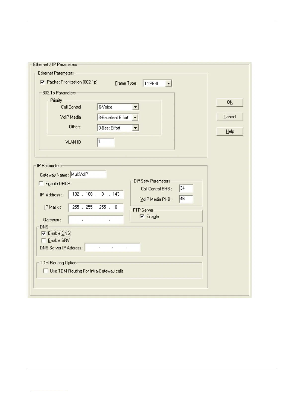 This section describes the Ethernet settings needed for the MultiVOIP unit. In each field, enter the values that fit