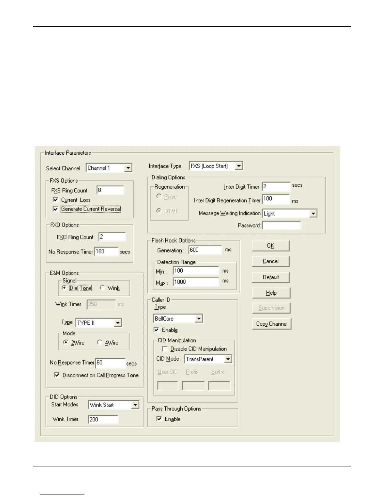 chosen depend on the type of telephony supervisory signaling or interface used (FXO, E&M, etc.). Here you find