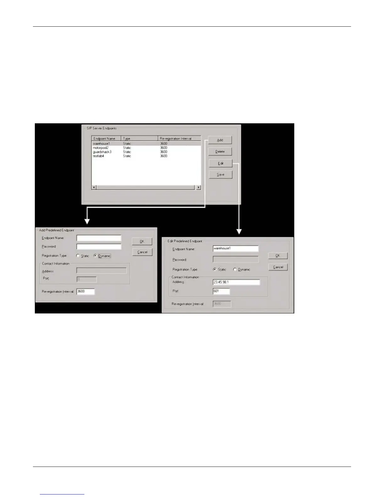 The main screen for Predefined Endpoints is a list. If you click Add or Edit for entries in this list, a secondary