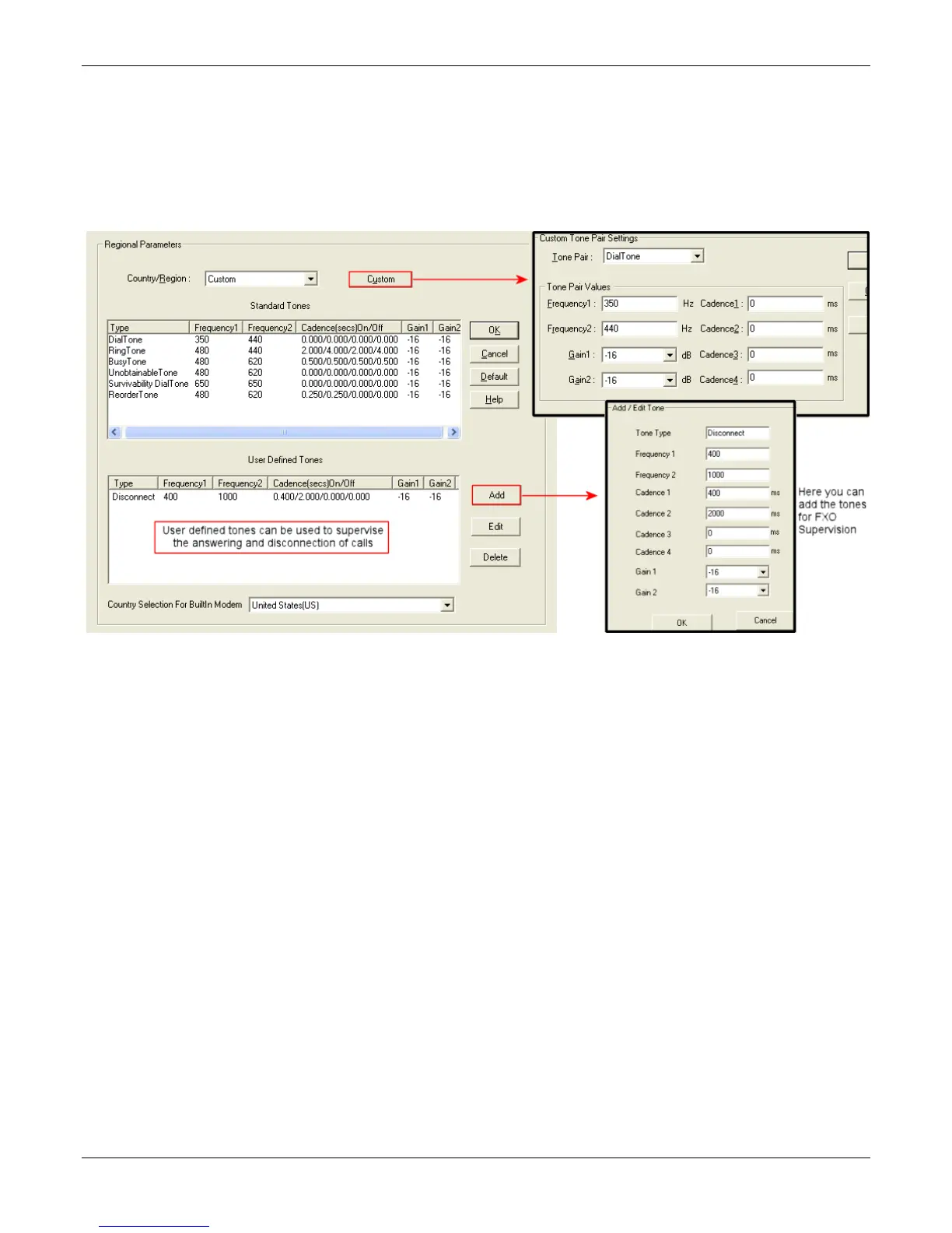 Use the Regional Parameters to set the phone signaling tones and cadences. For the country selected, the