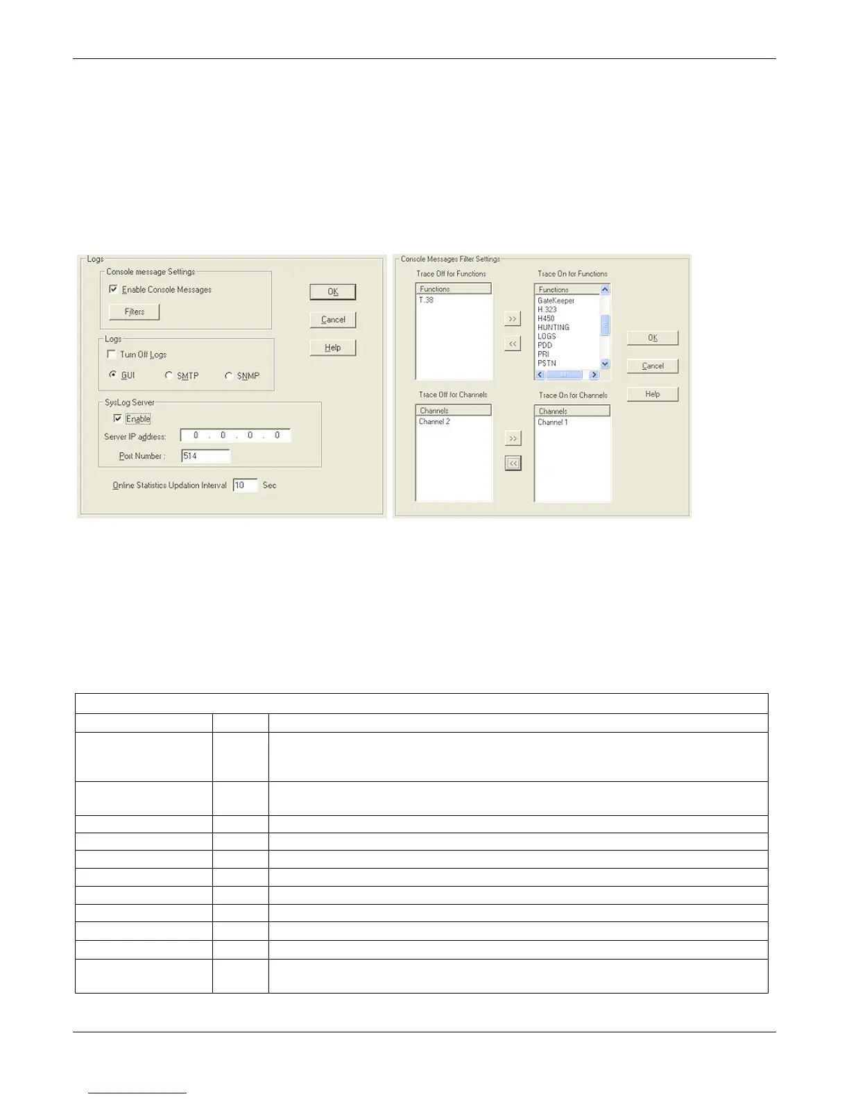 The Logs/Traces window lets you choose how the VOIP administrator receives log reports about the MultiVOIP’s
