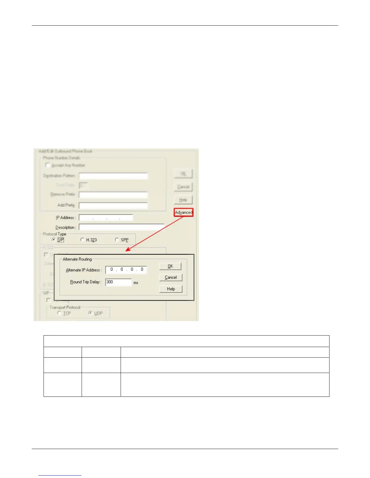 2. Specify the IP address of the alternate route for each destination pattern entry in the Outbound Phonebook.