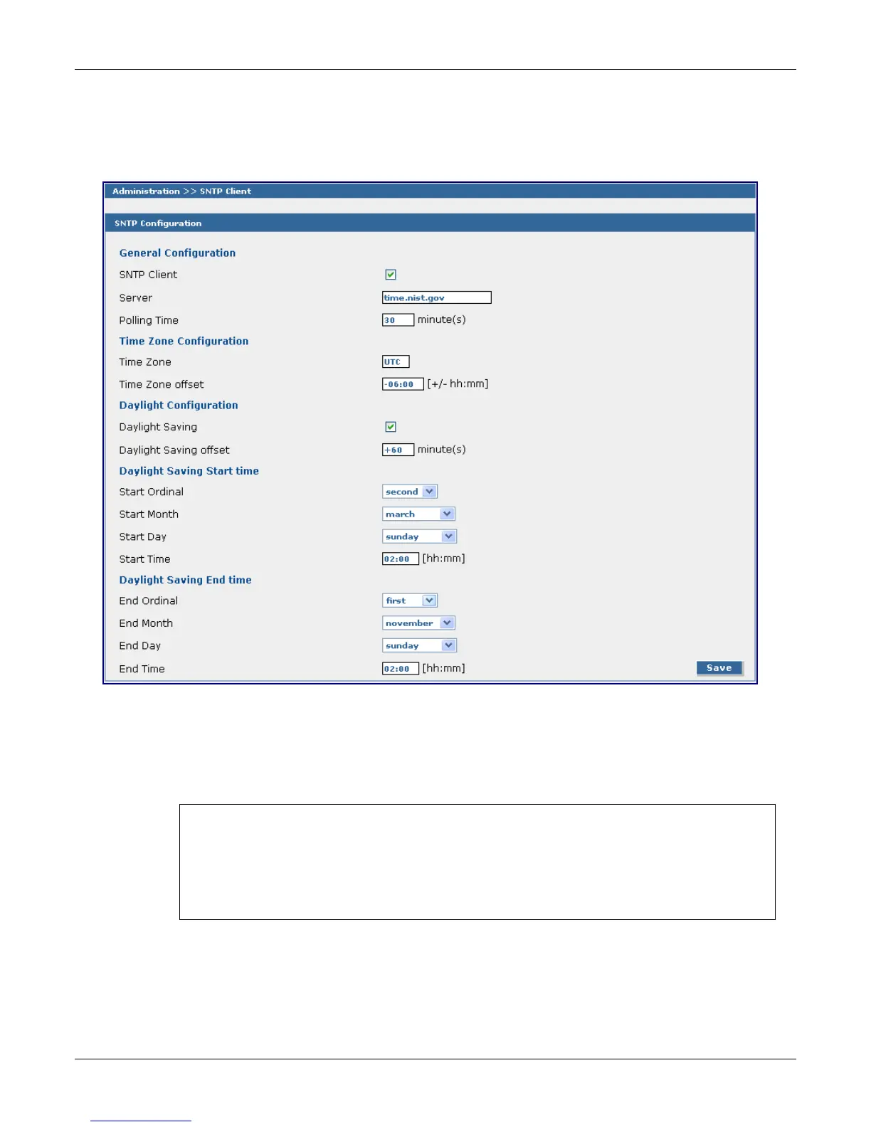 • SNTP Client must be enabled and the Ethernet connection must be live to the Internet.