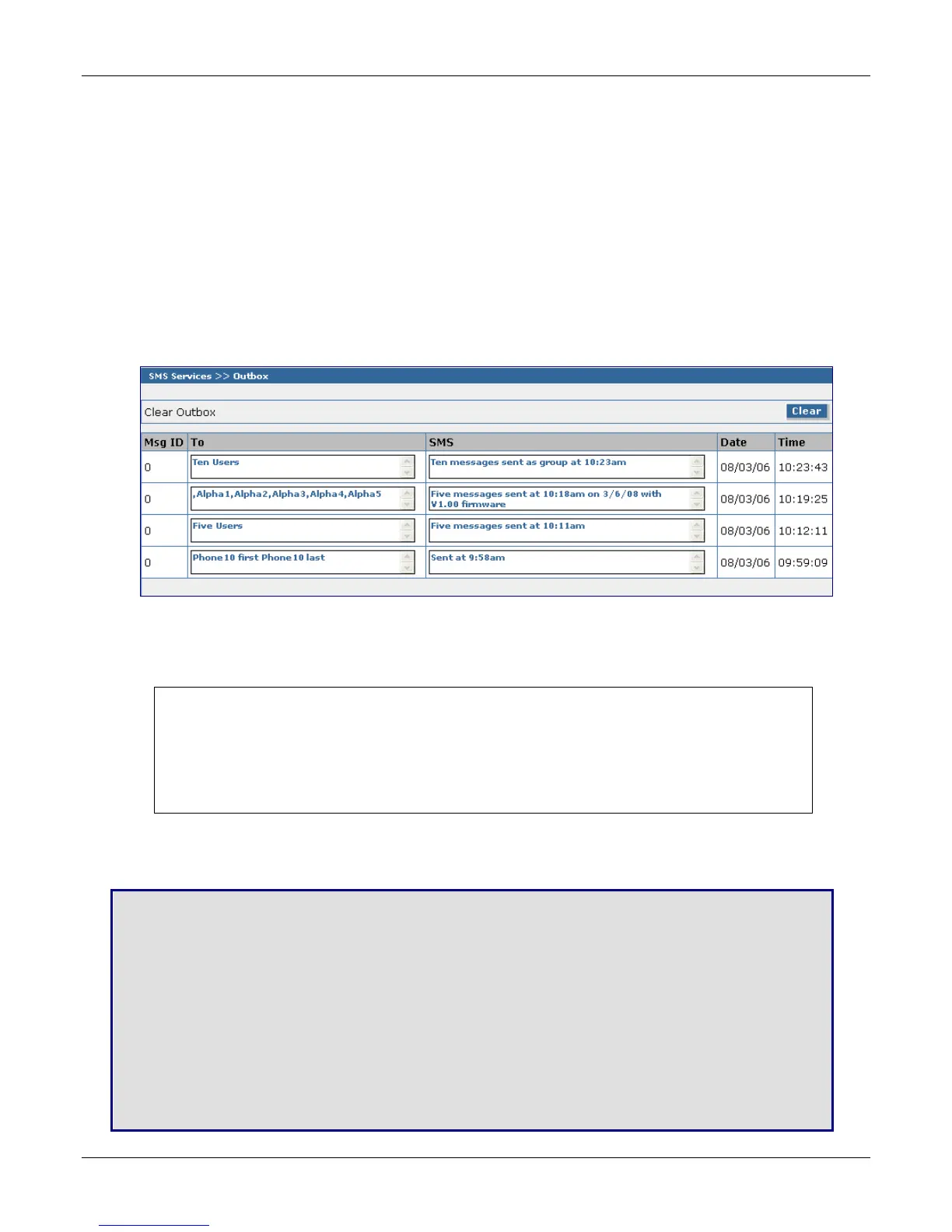 Click the Clear button to delete all the outbox entries.