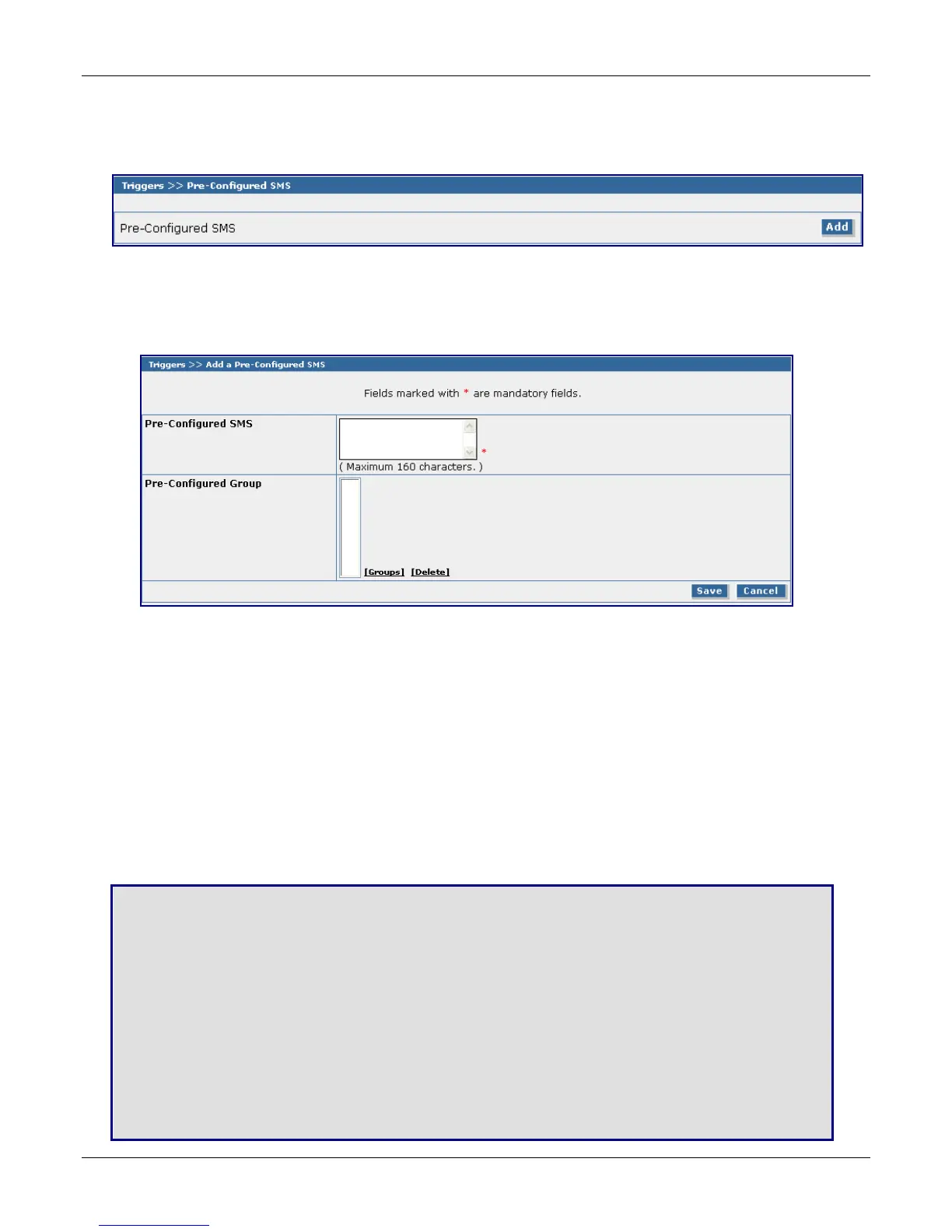 Click the Add button to open the Add a Pre-Configured SMS screen.