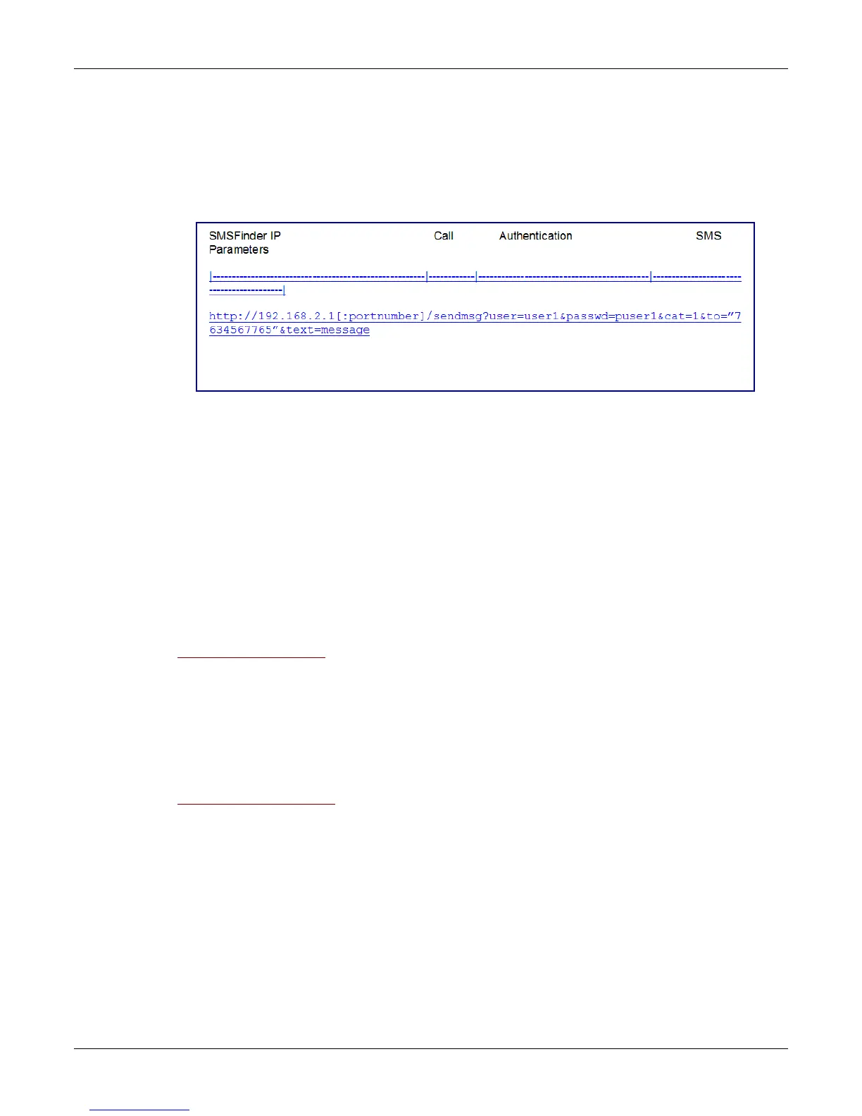 • The first part is the destination; i.e., the SMSFinder’s IP and HTTP port number.