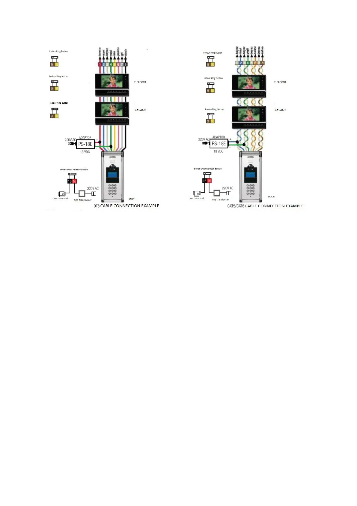 b) 6 Floors (Up to 40 floors) Works with CAT5/CAT6/DT8. (Connection diagrams are as