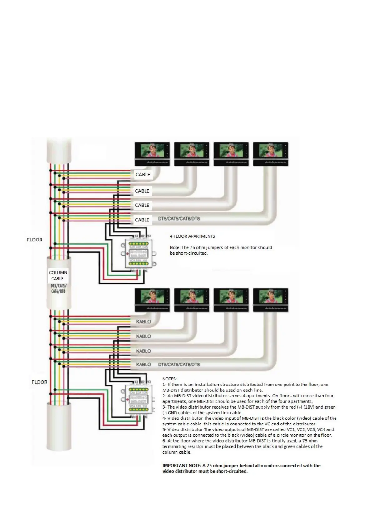 4- Important: For column installations, a 75 ohm resistor must be installed between the black (video)