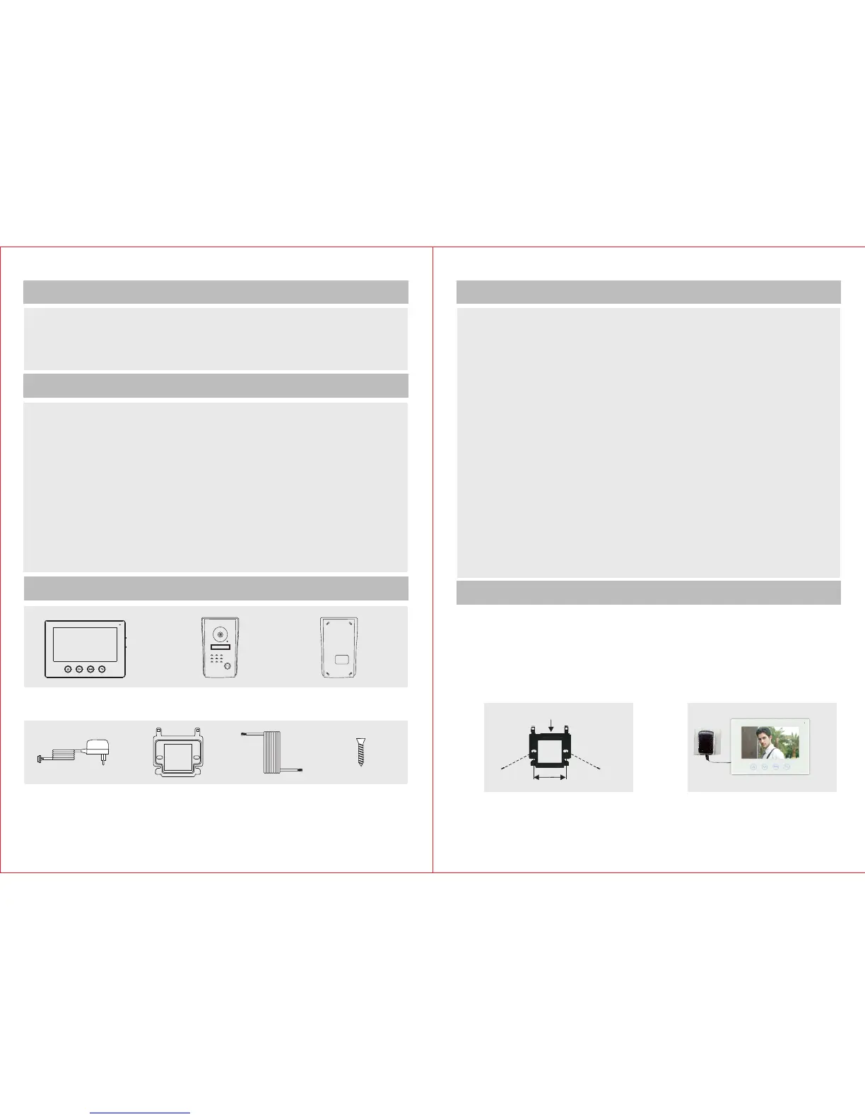 1) Fasten the bracket of the video indoor unit on the wall with screws.