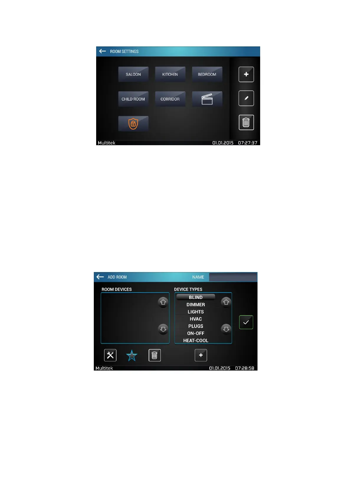 Below “Room Devices” section; device configuration, favorite and delete icons are located. Using these icons,